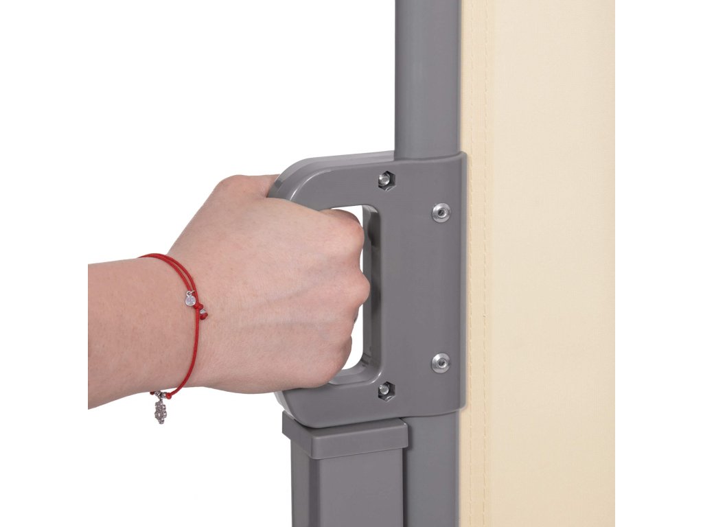 - Dokončovací prvky z plastu (překrytí na horní straně sloupku, krytky na obou stranách textilního pásu, rukojeť na pásu)