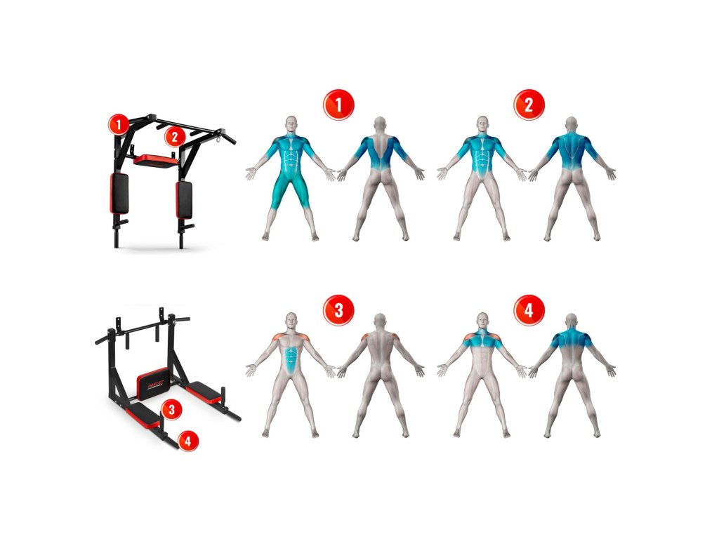 Multifunkční hrazda Neo-Sport se používá k procvičování břišních, zádových a ramenních svalů. Je to plně dostačující zařízení, které potřebujete k vytvarování skvělé postavy. Využívá vaši tělesnou hmotnost k dosažení skvělých a rychlých výsledků. Posilte a vytvarujte si ruce a záda.