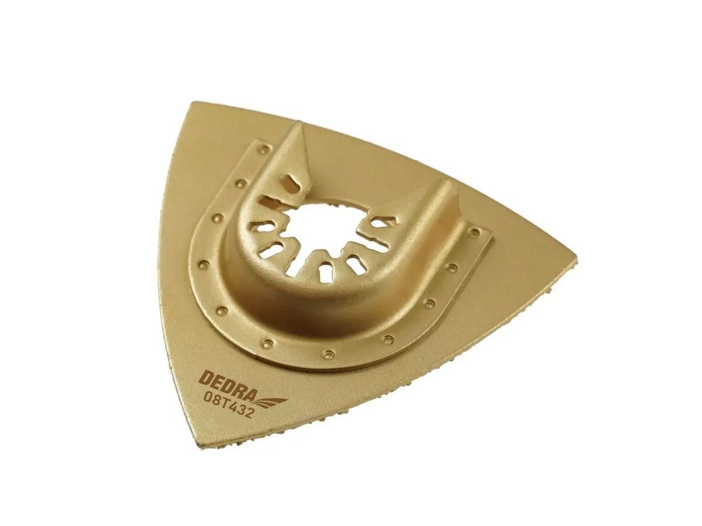 Pilka na keramiku pro víceúčelové nářadí DEDRA 08T432. Umožňuje broušení gresových, keramických dlaždic atd. Pilka ve tvaru trojúhelníkové desky (delta) umožňuje řezání na těžko přístupných místech, jako jsou například rohy. Velikost pilky je 78 mm.