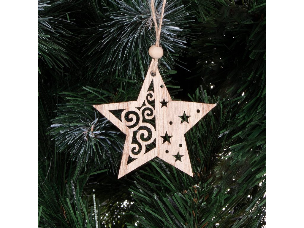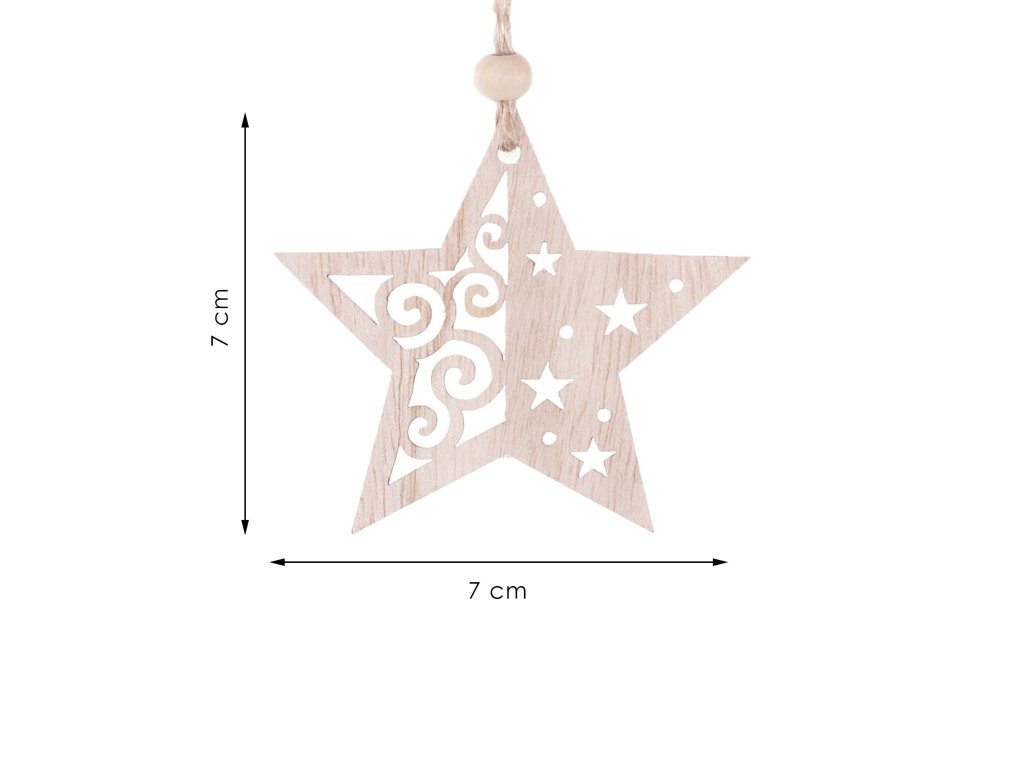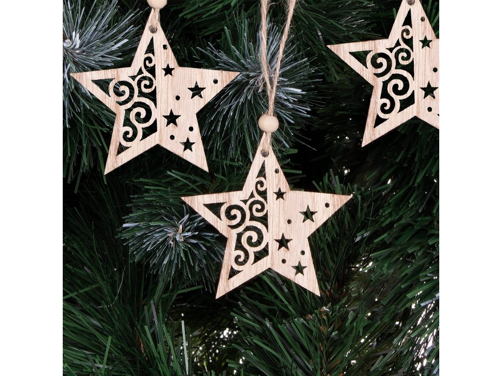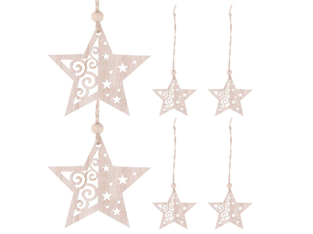 CA0665 DŘEVĚNÁ OZDOBKA 6 KS. (HVĚZDIČKA)