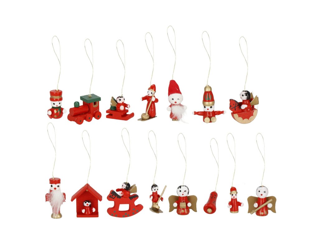 - Výhody: nerozbitné, figurky jsou zavěšeny na zlatých provázcích