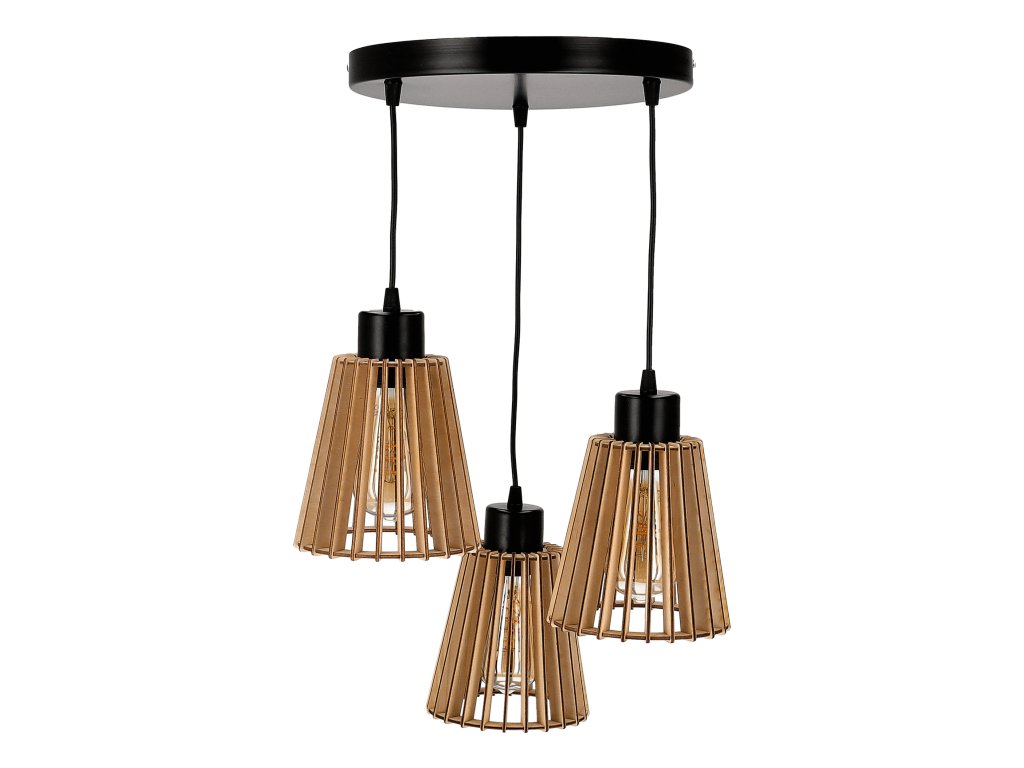 Černé dřevěné závěsné svítidlo 3x60W E27