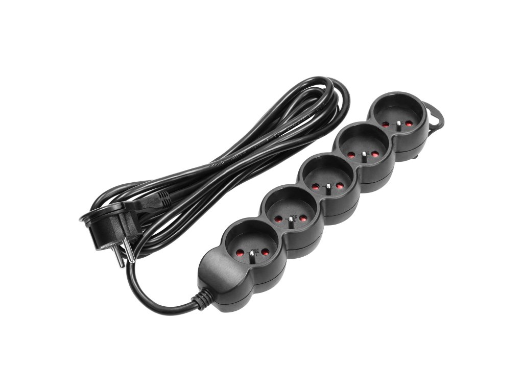 Černý prodlužovací kabel 5 zásuvek, 1.5m, 16A