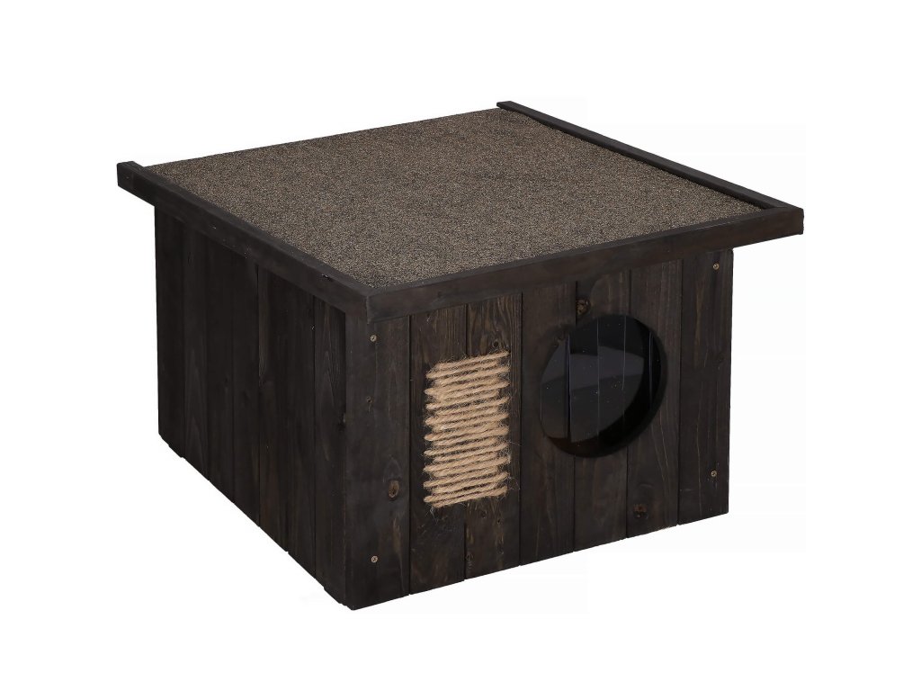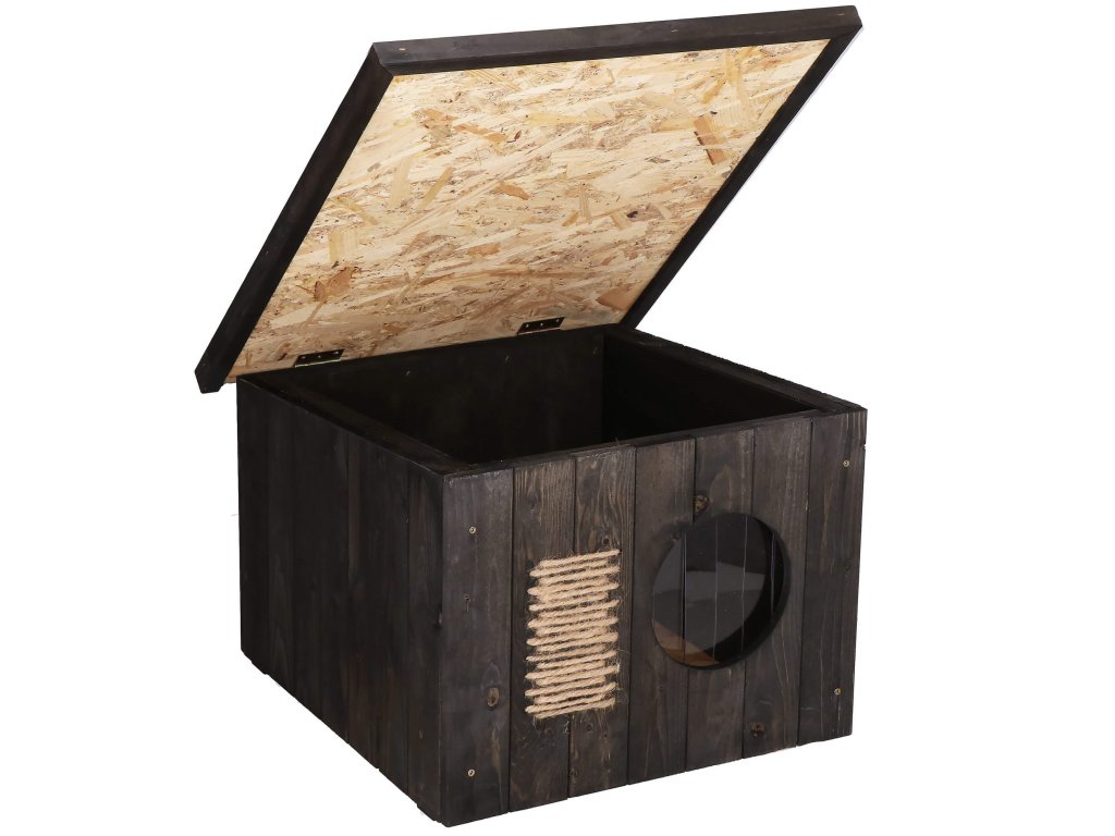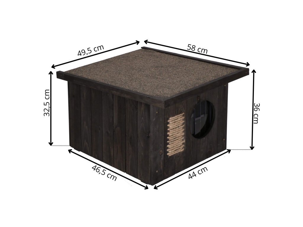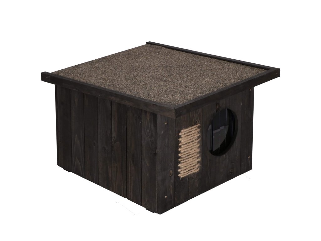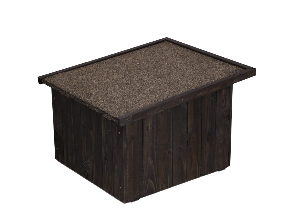 - Dno boudy má čtyři malé plastové nástavce umístěné v rozích, které izolují boudu od podkladu a zabraňují oděrům