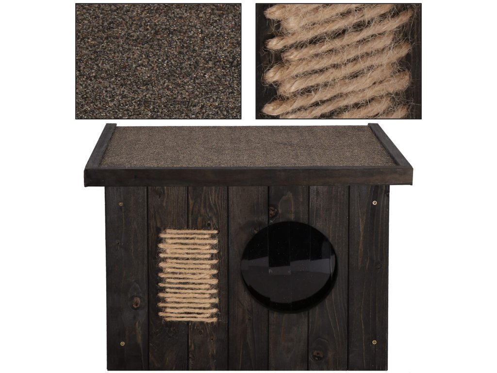 - Na přední stěně vedle vstupu připevněno škrabadlo ze šňůrek