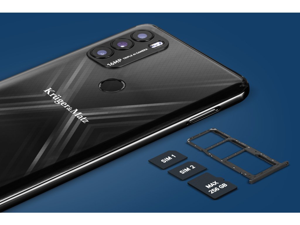 Se smartphonem Kruger&Matz LIVE 9 není místo pro kompromisy, protože obsahuje jak dvě karty nano SIM, tak i kartu micro SD. Nemusíte tedy volit mezi použitím dvou čísel nebo rozšířením paměti telefonu.