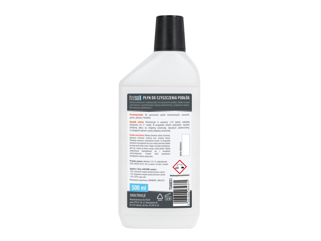 Přípravek na mytí podlah Teesa ti pomůže účinně se zbavit nečistot z různých druhů podlah, např. panelů, dlaždic, kachlí a terakoty. Tento prostředek dodává čištěným povrchům lesk bez šmouh a stop. Použití přípravku způsobí, že podlaha je osvěžená a příjemně voní.