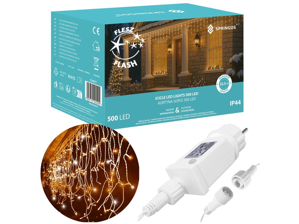 CL0517 ZÁCLONA LEDOVÉ STALAKTYTY FLASH 500 LED