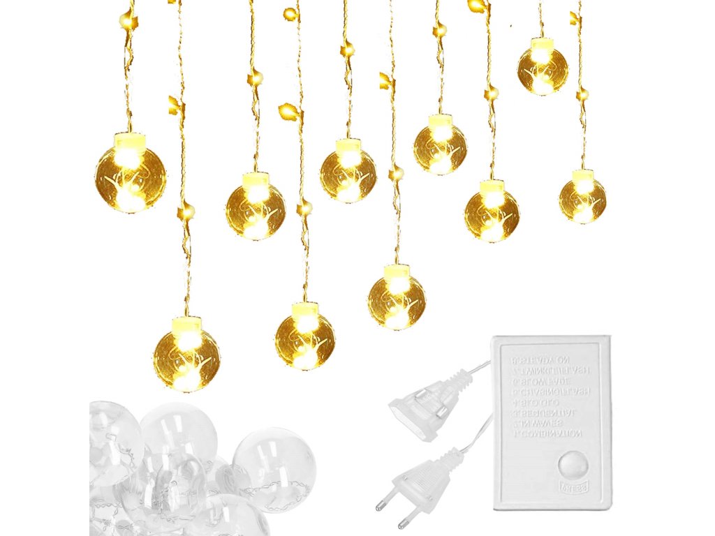 - Barva: teplá bílá8 funkcí programátor (včetně funkce blesk)Délka osvětlovací části: 2,5 mDélka kabelu: 2 mRozložení světel: cca 27 cmPrůměr koule: 7,9 cmDélka koule: 9 cmDélka rampouchů měřená s koulí: 60 cm, 100 cm