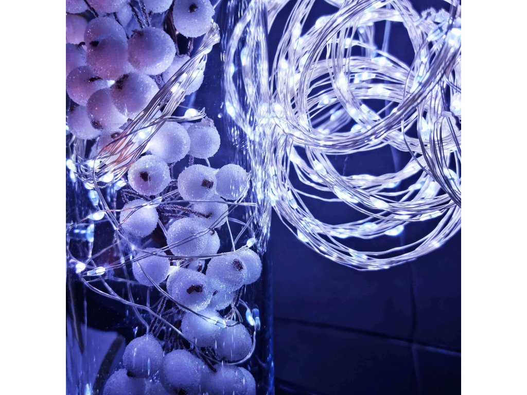 - Světla na pevných měděných drátech ve stříbrné barvě
