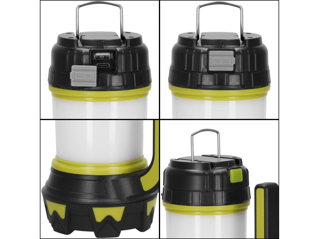 - Možnost nabíjení svítilny pomocí USB kabelu nebo nabíjení telefonu nebo jiného zařízení s USB-C portem připojením kabelu ke svítilně a k zařízení