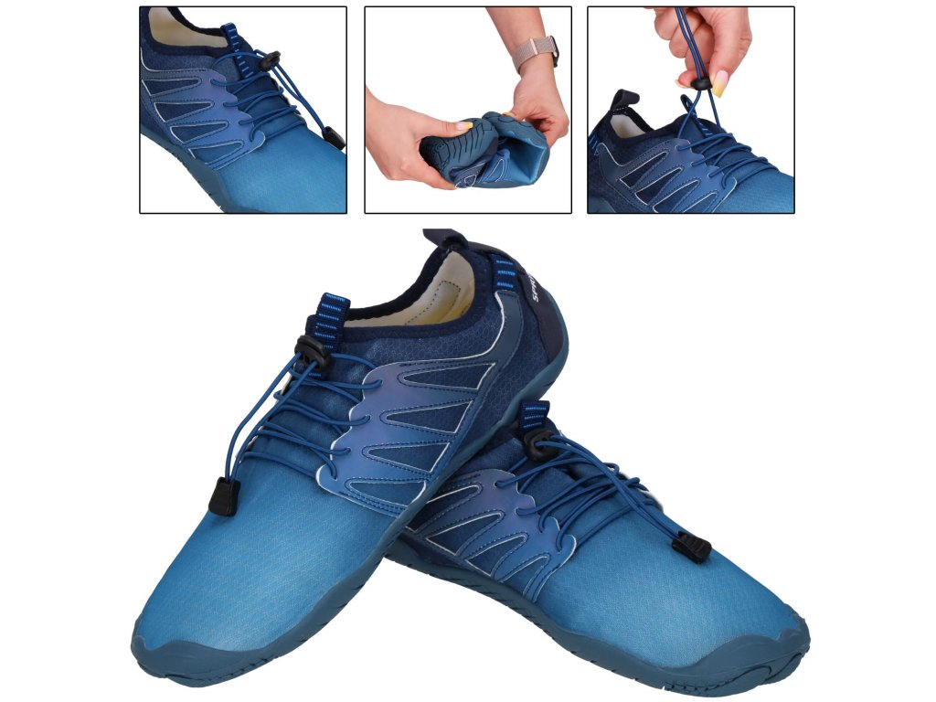 - Materiál: gumová podrážka + tkanina s prodyšnou vrstvou