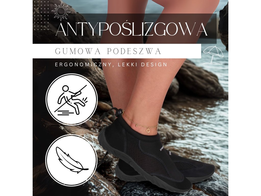 - Nedoporučuje se používat obuv na mokrých okrajích bazénu a na velmi mokrých a kluzkých plochách.
