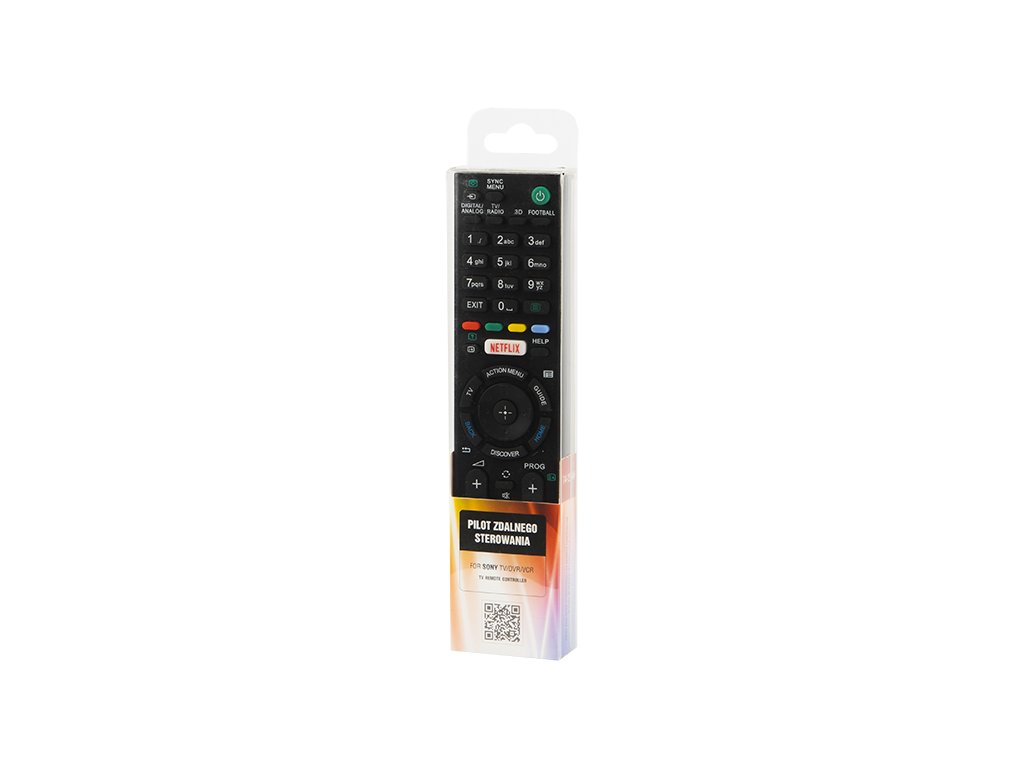 Univerzální ovladač umožňující ovládání následujících zařízení značky Sony: TV, VCR, DVR. Produkt obsahuje nezbytná tlačítka pro základní ovládání zmíněných zařízení a navíc samostatné tlačítko pro spuštění populární služby Netflix. Jednoduchý design a uspořádání zajišťuje plně snadné a intuitivní ovládání. K výrobě ovladače byly použity vysoce kvalitní materiály, které zajišťují odolnost produktu na dlouhou dobu. Ideálně se hodí pro ovládání vašeho zařízení, pokud se tovární ovladač ztratí nebo poškodí.