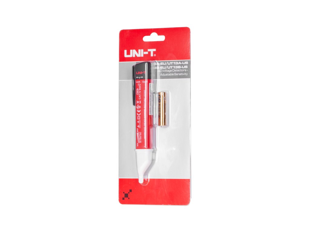 UT11B je malý detektor, který umožní velmi rychle a snadno a bez kontaktu s kovovými prvky detekovat střídavé napětí v rozsahu AC 50V~600VAC. Po dotyku hrotu detektoru s izolací vodiče nebo krytem zásuvky zařízení signalizuje přítomnost napětí zvukovým signálem a červeným světlem hrotu.