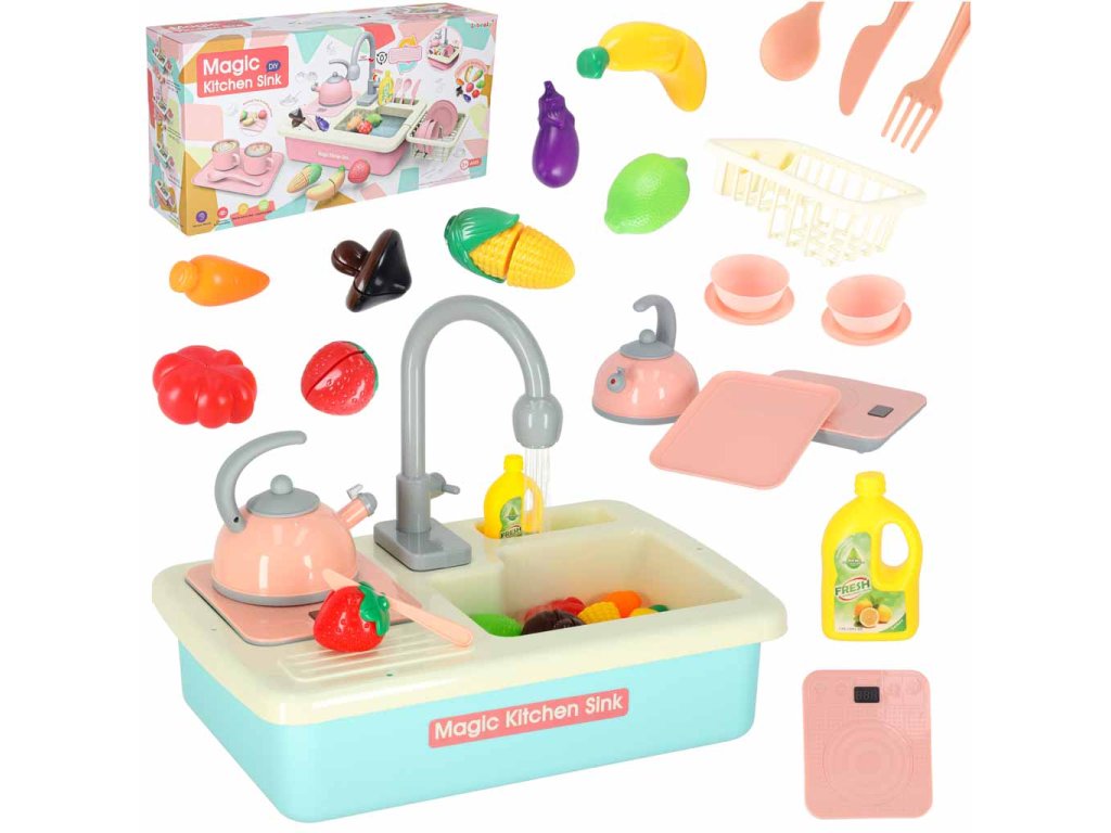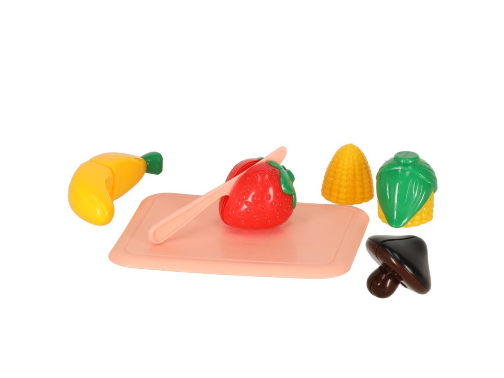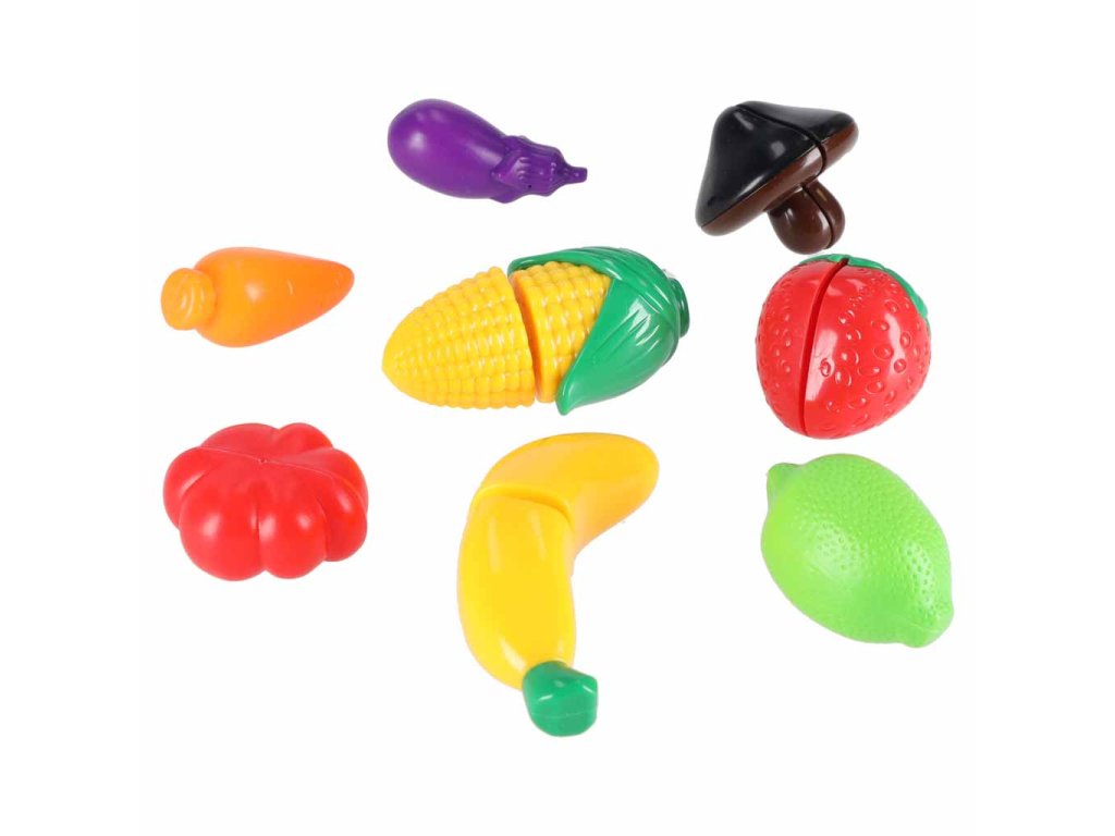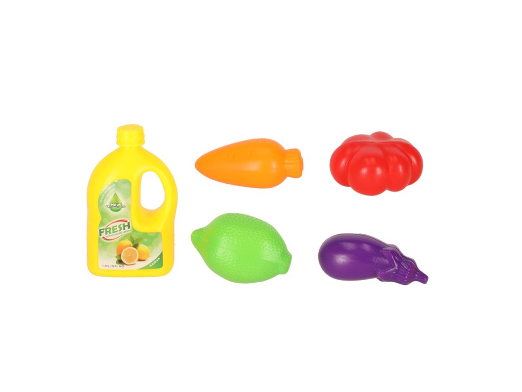 Plastové příslušenství (umyvadlo, rajče, limetka, lilek, banán, jahoda, kukuřice, houbu, mrkev)