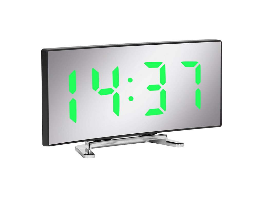 Hodiny jsou vybaveny velkým a čitelným LED displejem, který zobrazuje čas ve 12hodinovém nebo 24hodinovém formátu. Zelené číslice jsou skvěle viditelné jak ve dne, tak v noci a funkce blikající dvojtečky dodává dynamický prvek. Díky funkci přepínání režimů displej zobrazuje nejen čas, ale také datum, teplotu a stav nočního režimu – vše dostupné po stisknutí jediného tlačítka MODE.