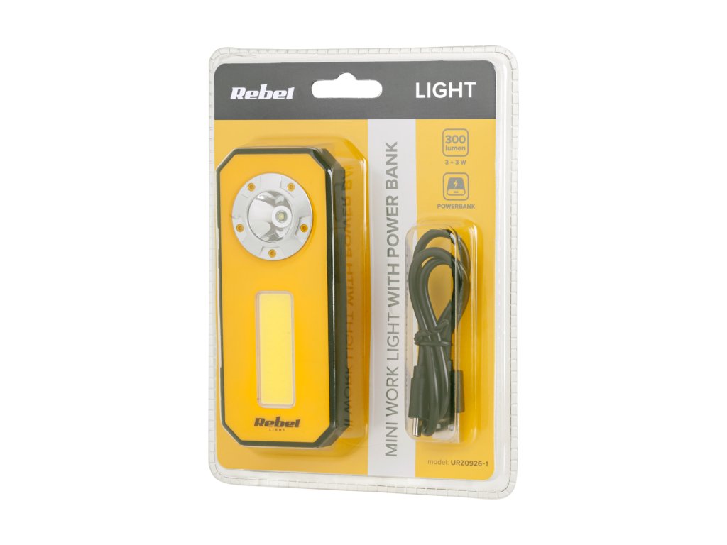Akumulátorová mini pracovní lampa 3 W LED + 3 W COB 300 lm SOS Rebel