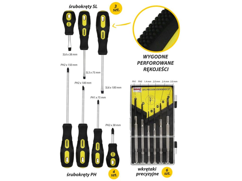 - Šroubováky PH – 4 ks: 2x38 mm, 1x75 mm, 2x100 mm, 2x150 mm