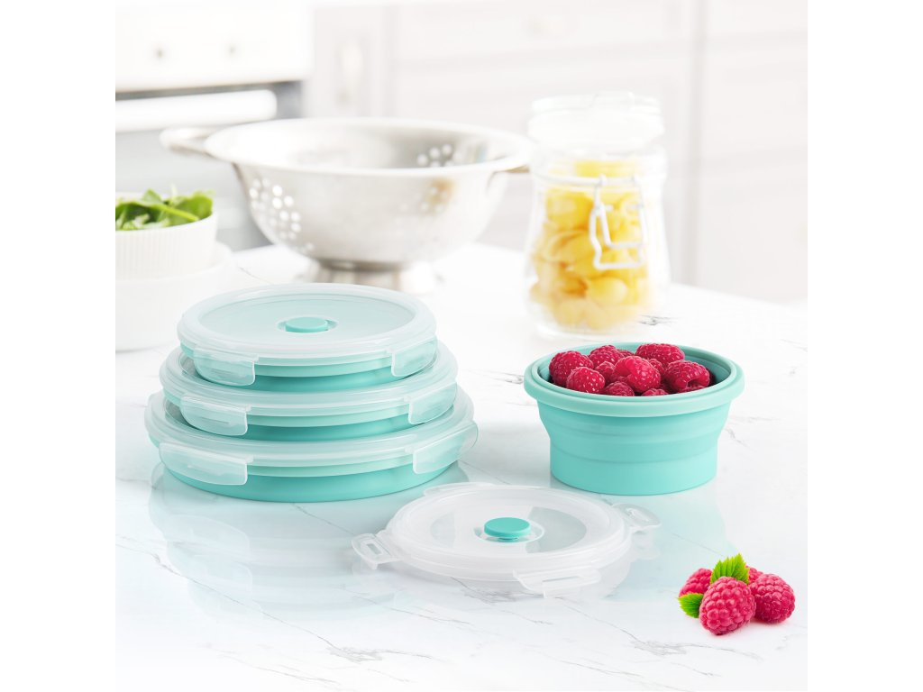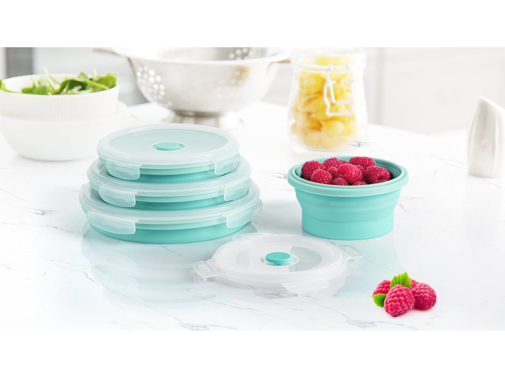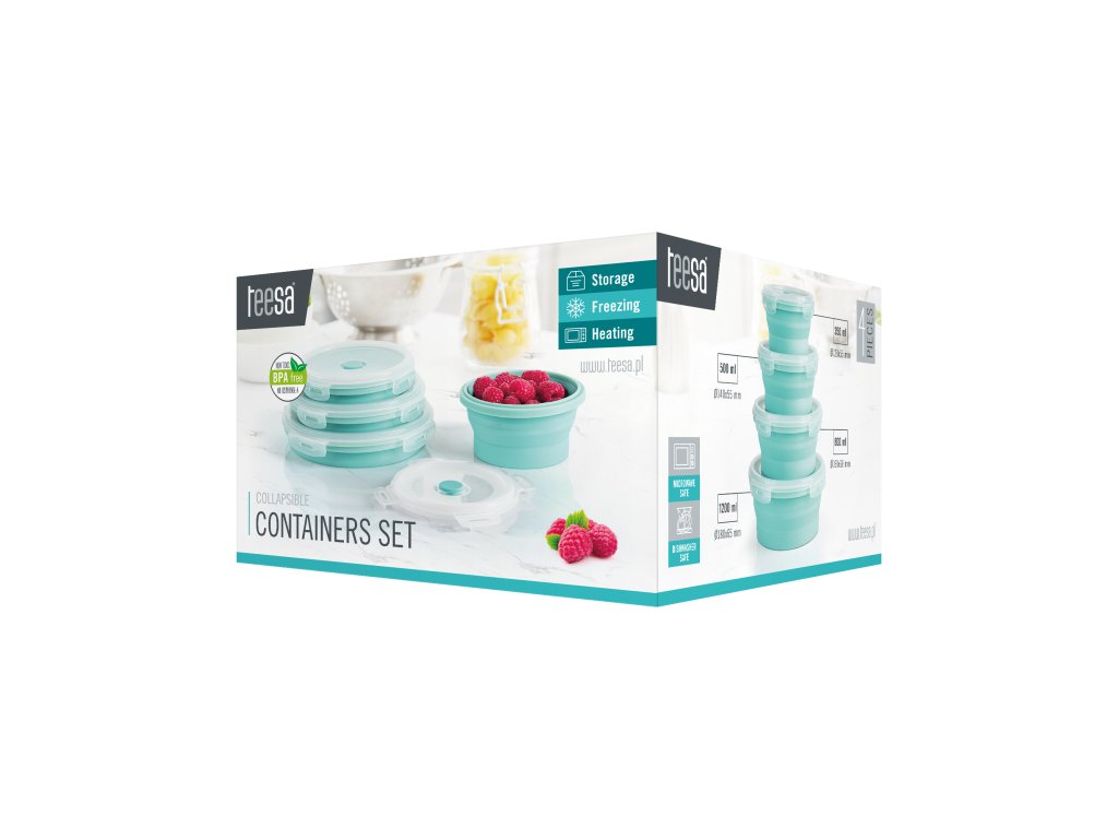 Nemáte místo pro zbytečné příslušenství? S praktickou, univerzální sadou nádob Teesa lépe zorganizujete prostor ve své kuchyni. Vše díky skládací konstrukci, díky které zabírají mnohem méně místa než tradiční plastové nádoby na potraviny.