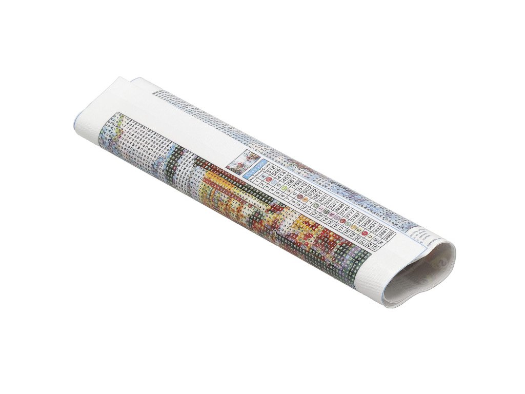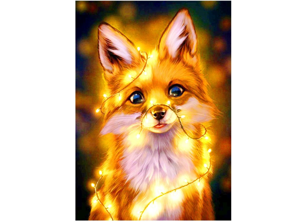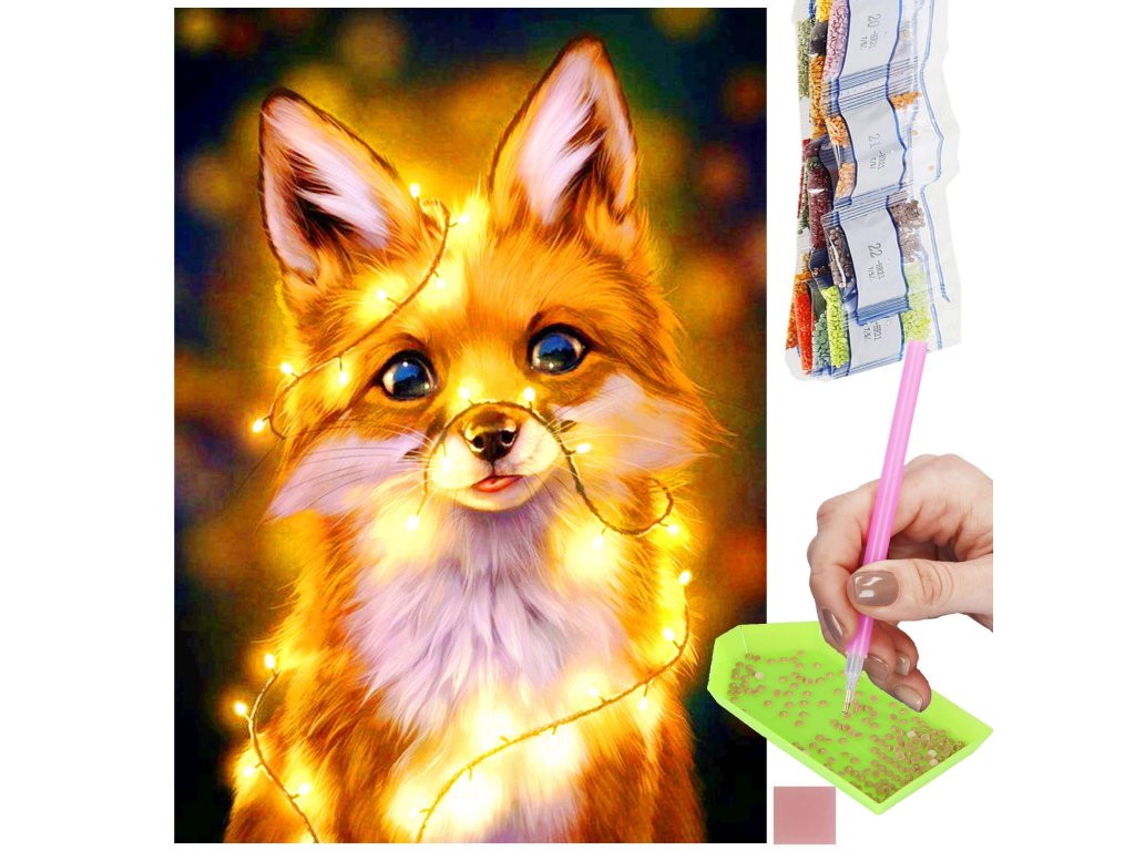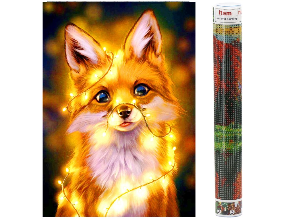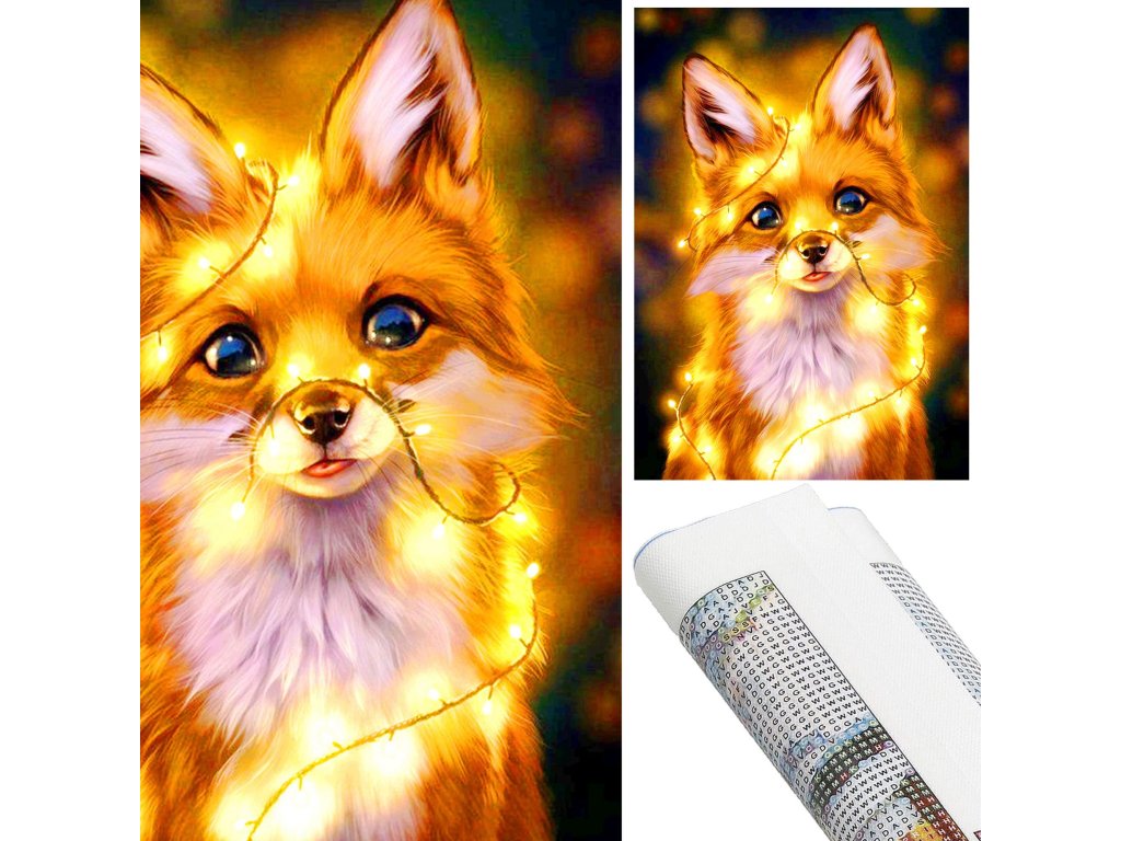 1x silné plátno s potištěným obrazem, který zobrazuje malou lišku a index přiřazující písmena k barvám a barvy k číslům určujícím barvu diamantu
