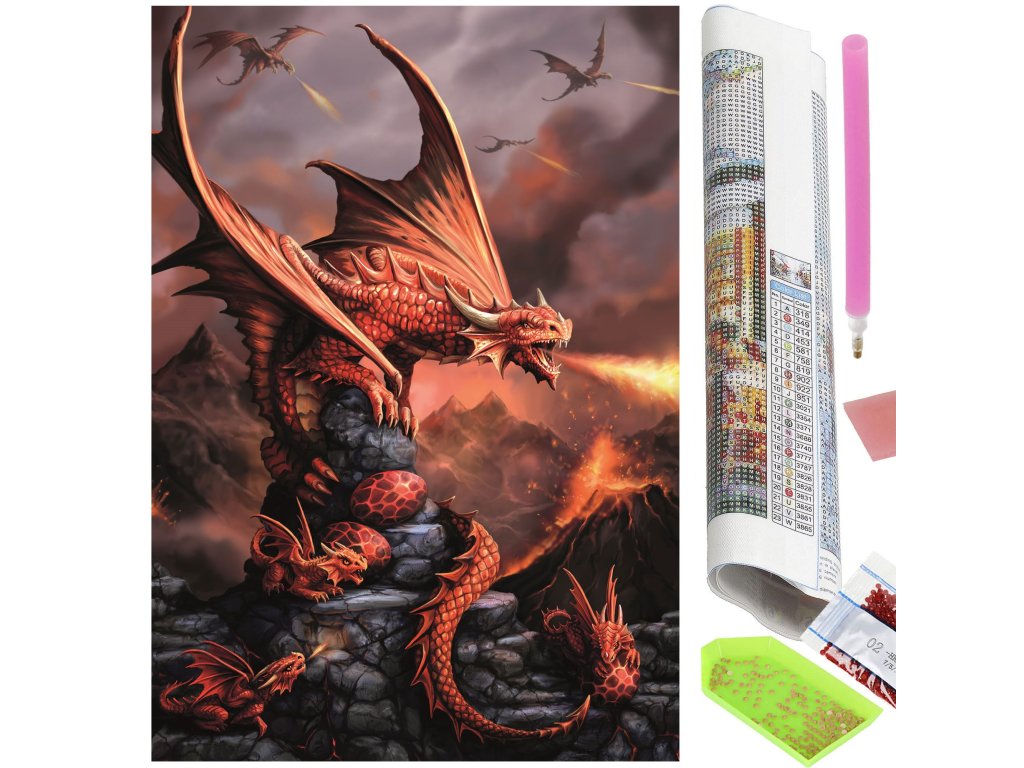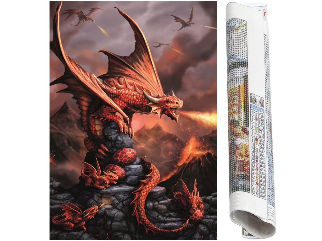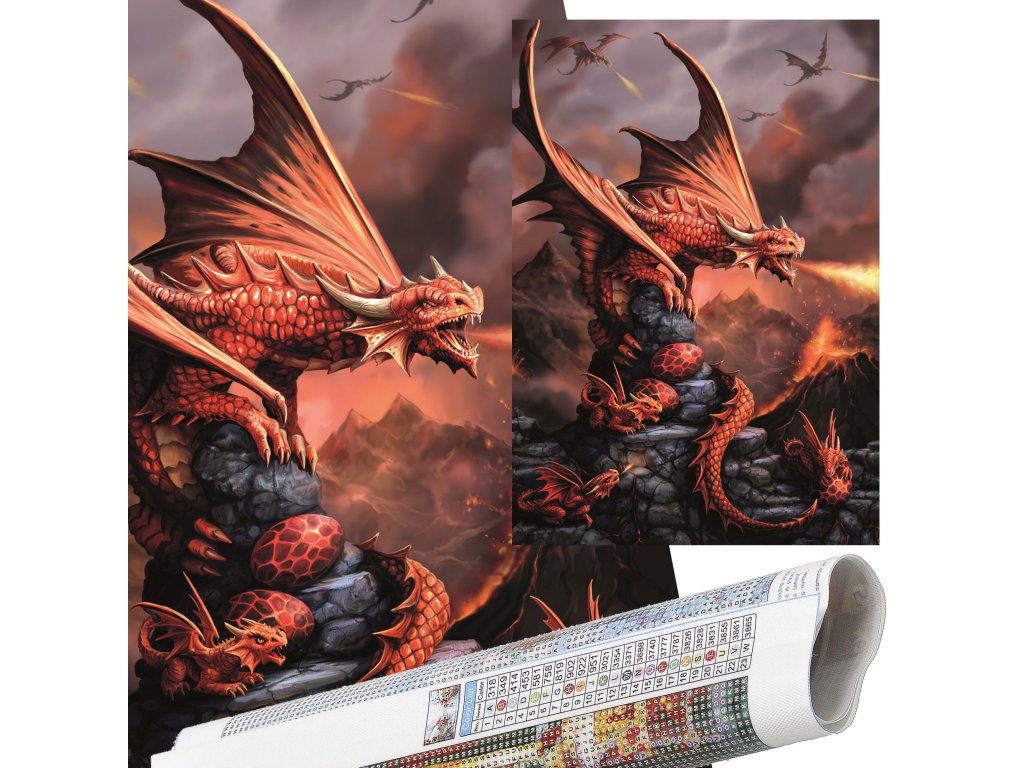 1x pevné plátno s vytištěným obrazem, znázorňujícím draka a indexem přiřazujícím písmena k barvám a barvy k číslům určujícím barvu diamantu