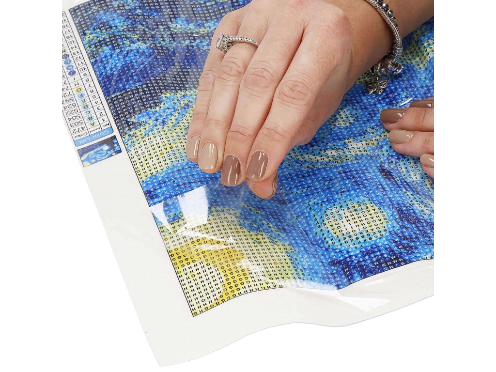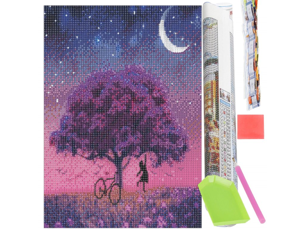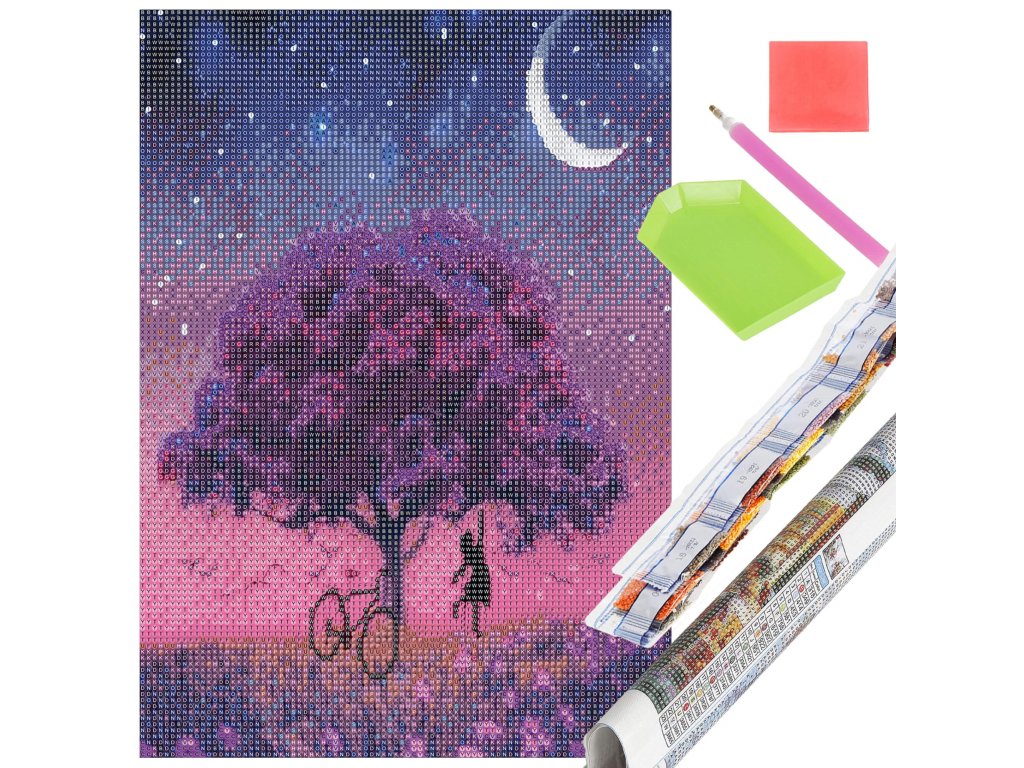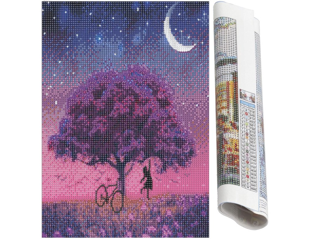 - 1x silné plátno s potištěným obrazem, zobrazujícím strom a indexem, který přiřazuje písmena k barvám a barvy k číslům určujícím barvu diamantu
