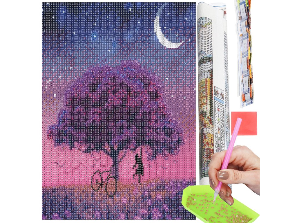 - 1x růžový aplikátor (délka 12,5 cm, průměr 0,7 cm) pro uchopení a nalepení diamantů