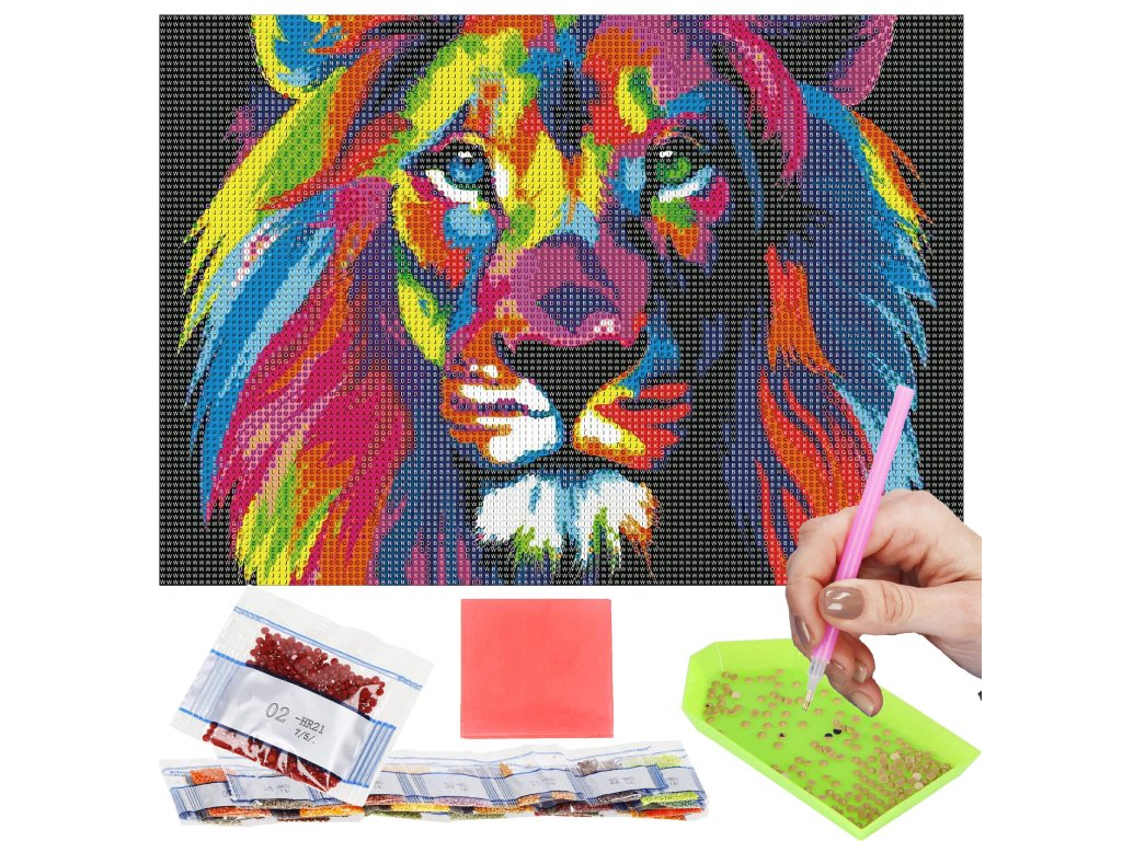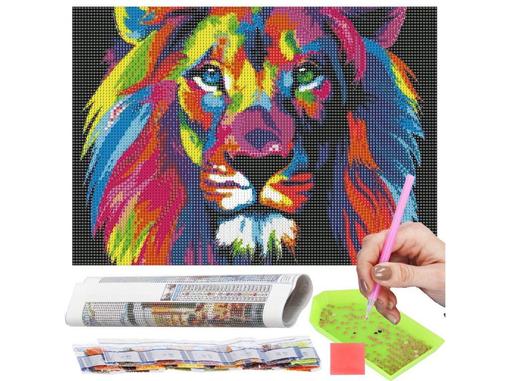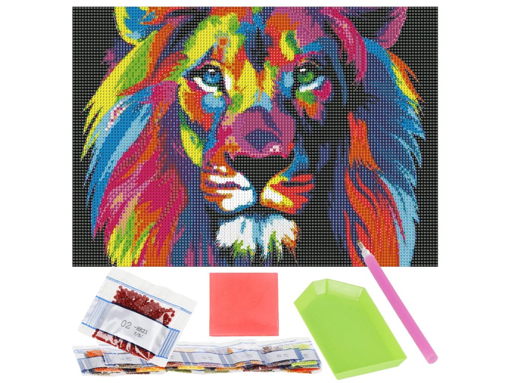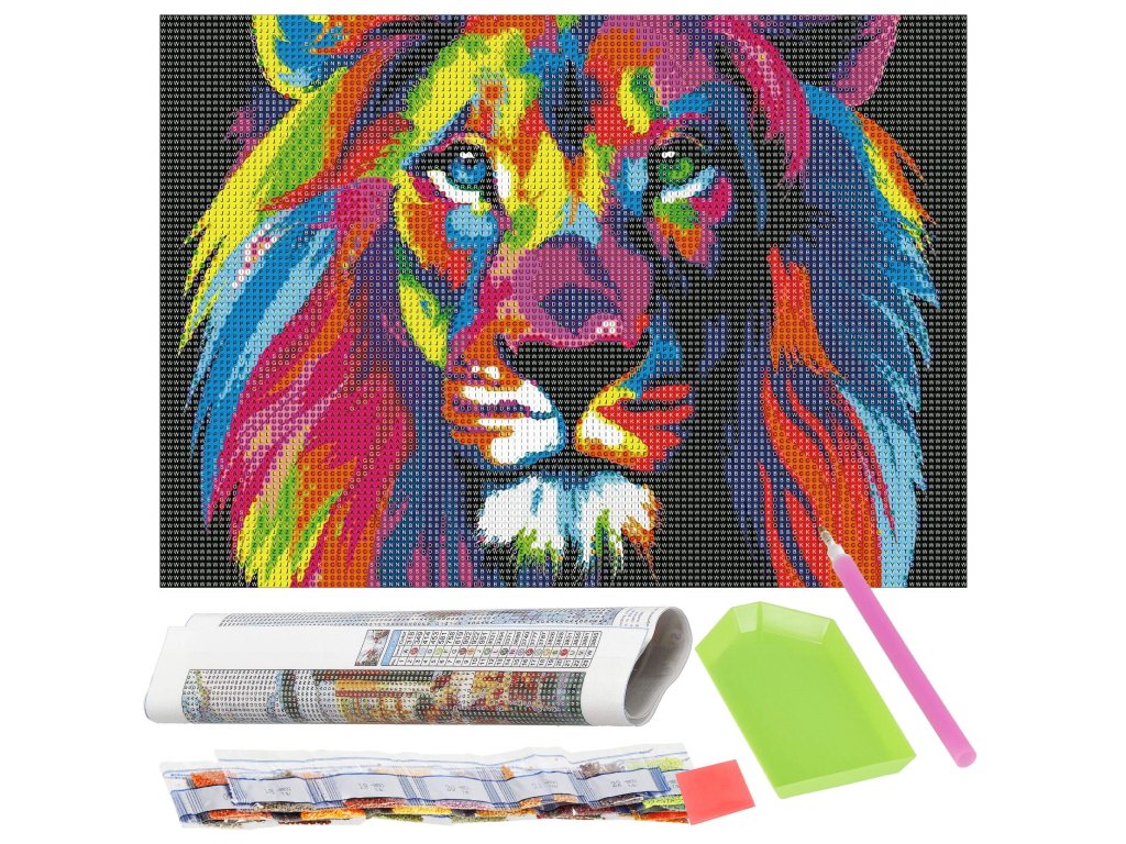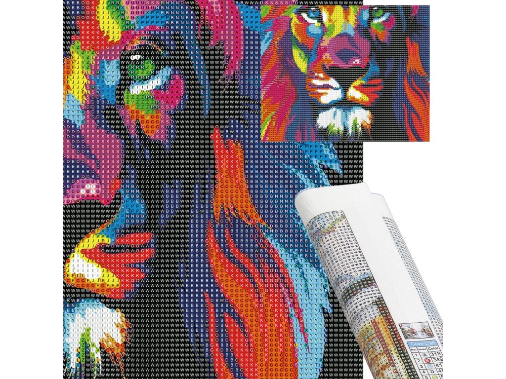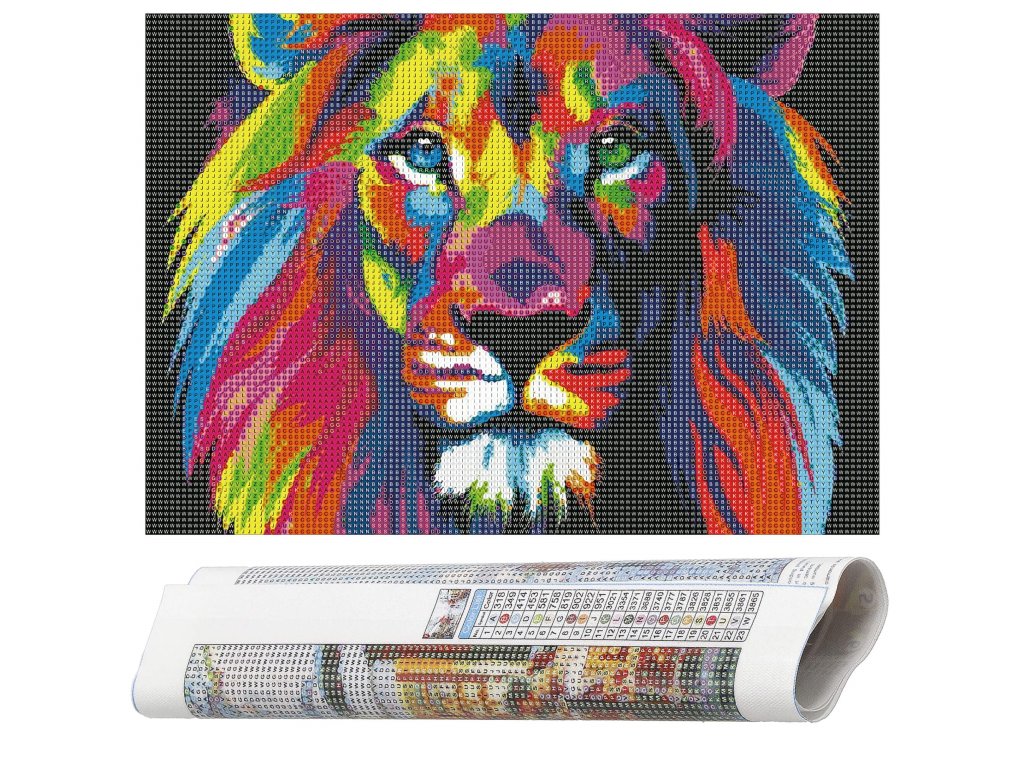 - 1x silné plátno s potištěným obrazem, zobrazujícím barevného lva a indexem přiřazujícím písmena k barvám a barvy k číslům určujícím barvu diamantu