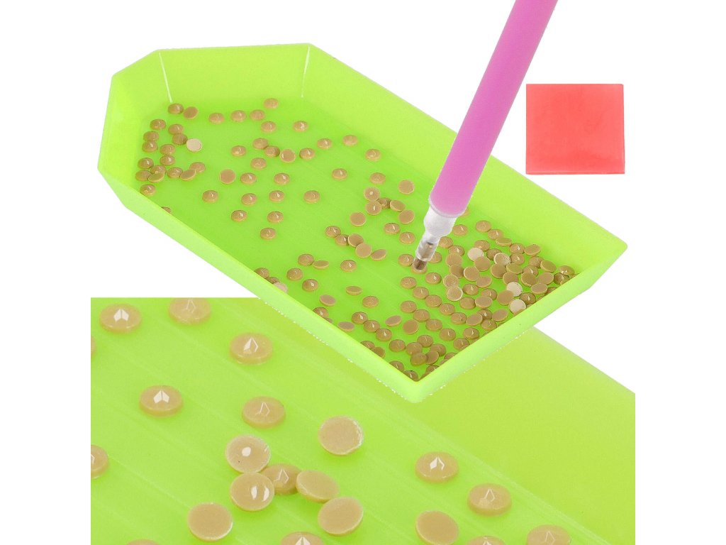 - 1x zelená tácka na diamanty (délka 9 cm, šířka 5 cm)