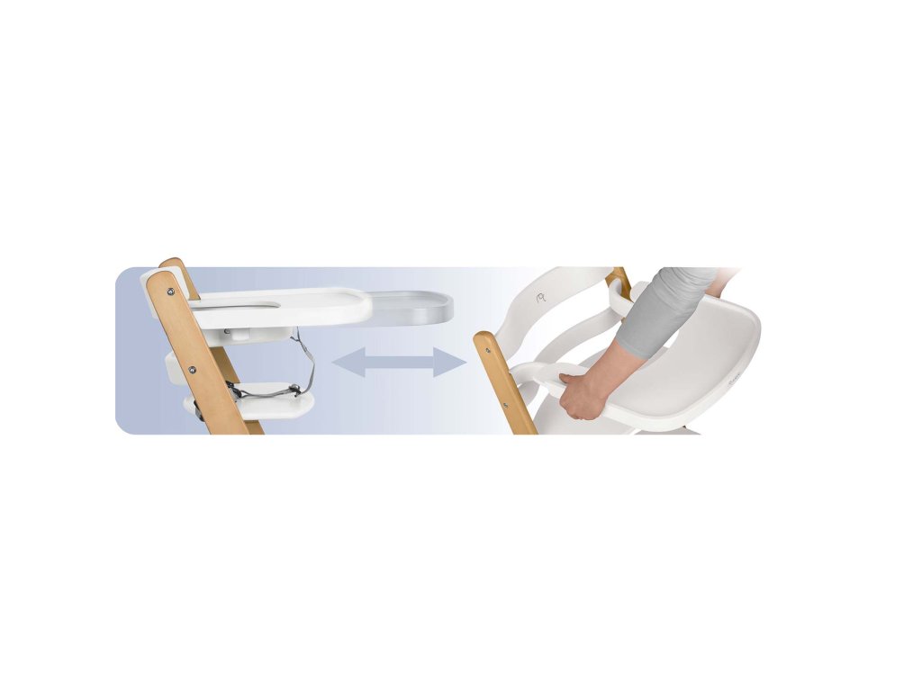 Židlička umožňuje úplné demontování tácku, když je dítě starší a může být posunuta přímo k rodinnému stolu.