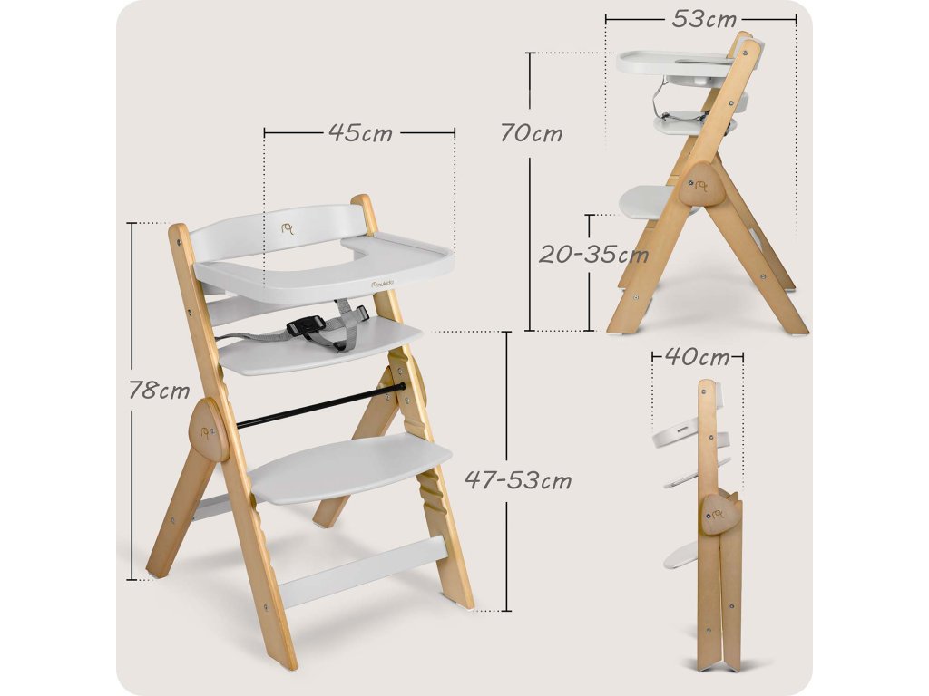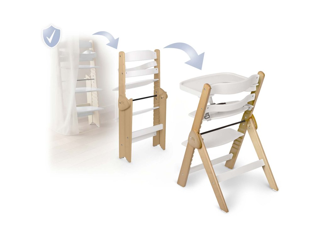 Odnímatelný tácek podstatně usnadňuje udržení čistoty. Lakované topolové dřevo je zárukou kvality. Ochranné dřevo nepovolí absorbovat skvrny a židlička se rychle vrátí do dokonalé čistoty.