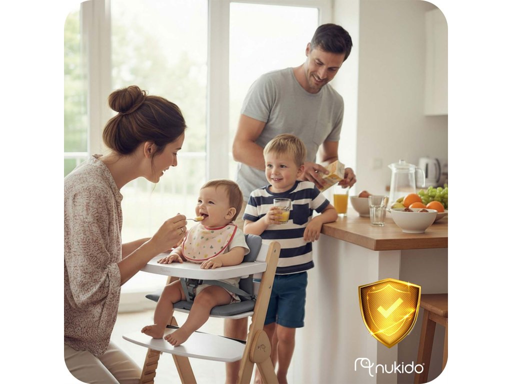 Židlička značky Nukido je plně certifikována, což zajišťuje úplnou bezpečnost pro vaše miminko.