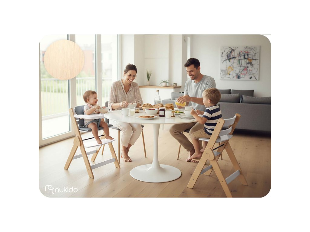 Univerzální použití: židlička NUKIDO je ideálním místem pro společné jídlo u rodinného stolu, ale také pro hry a učení. Timo je skvělé na kreslení, malování nebo hraní s kostkami.