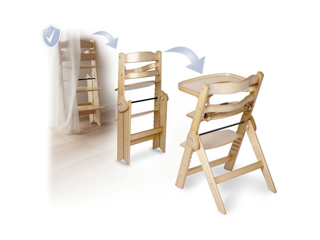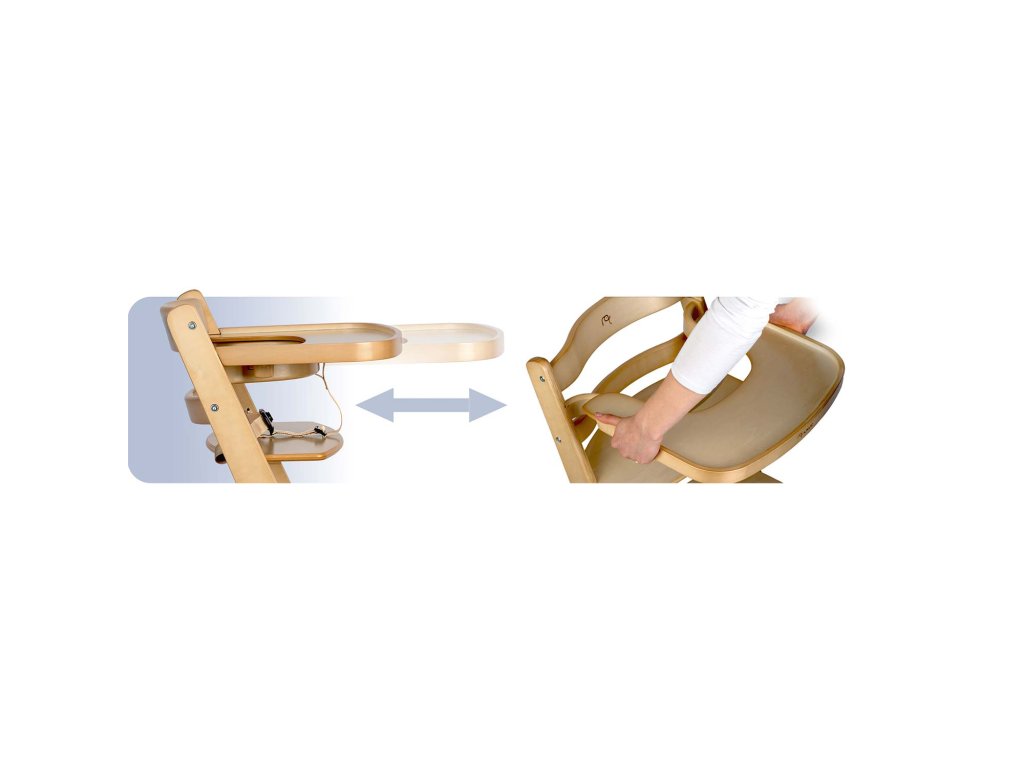 Židlička umožňuje úplné demontování tácu, když je dítě starší a může být přisunuta přímo k rodinnému stolu.