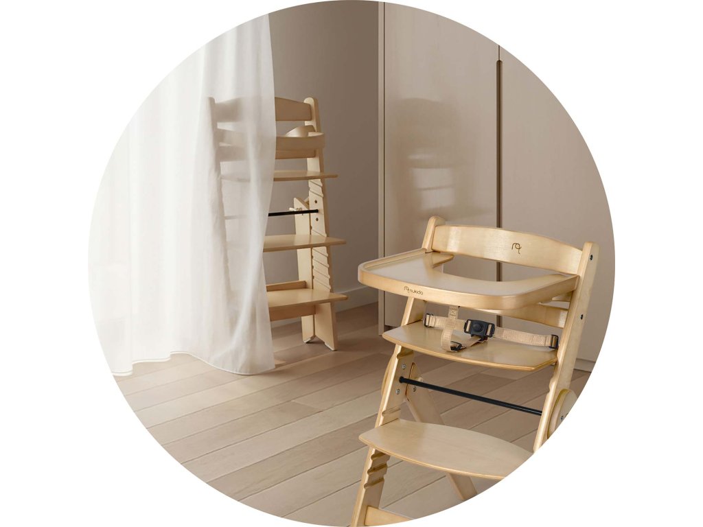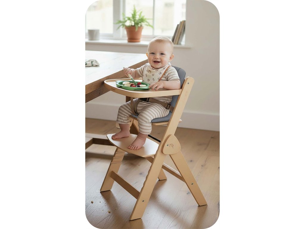 Díky speciální sadě s bezpečnostními pásy a pohodlným polštářem se stává bezpečnou a komfortní první židličkou pro vaše miminko. Ideální na první jídla a společné chvíle u stolu.