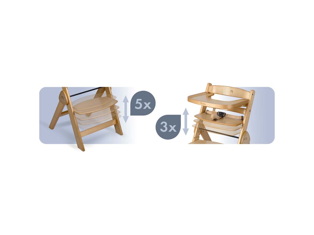 Jakmile vaše dítě roste, židlička se vyvíjí! Stačí sundat tác a přizpůsobit výšku sedáku a opěradla na nohy a židlička se mění na ideální místo pro jídlo u rodinného stolu. Stabilní, ergonomické a vždy ve správné výšce.