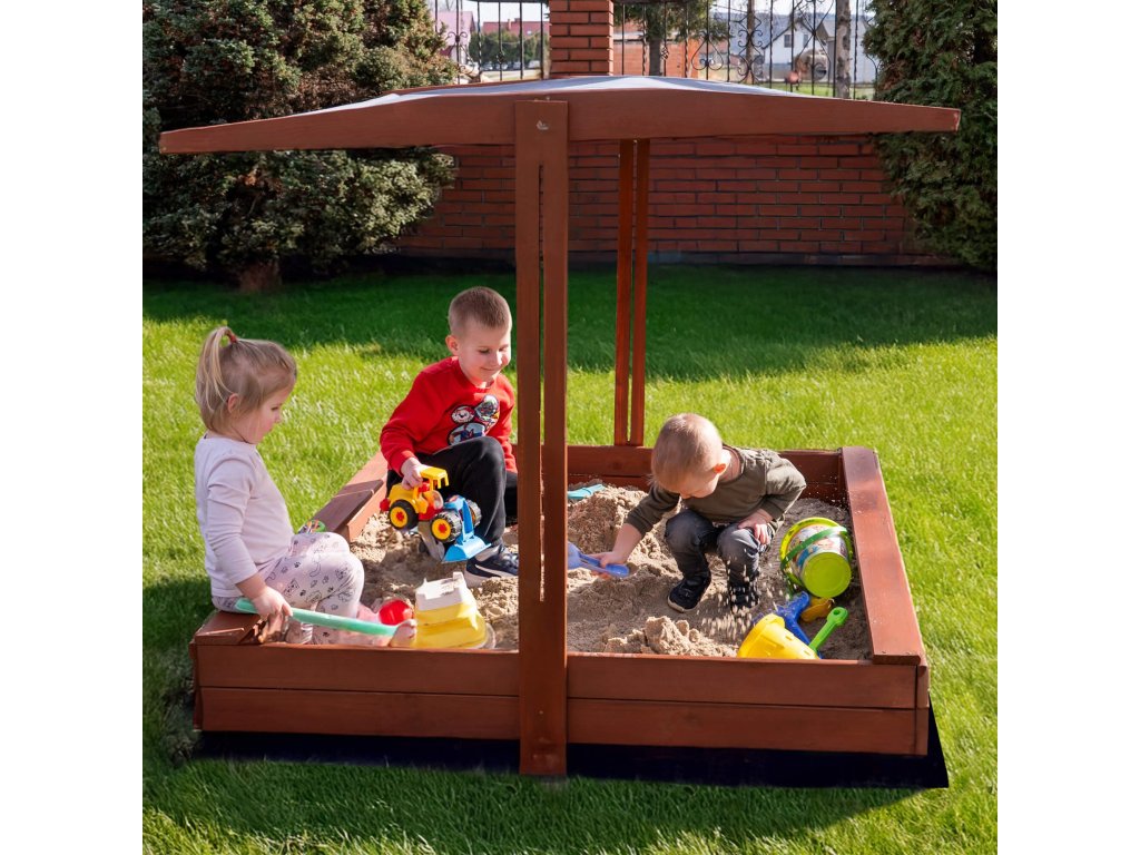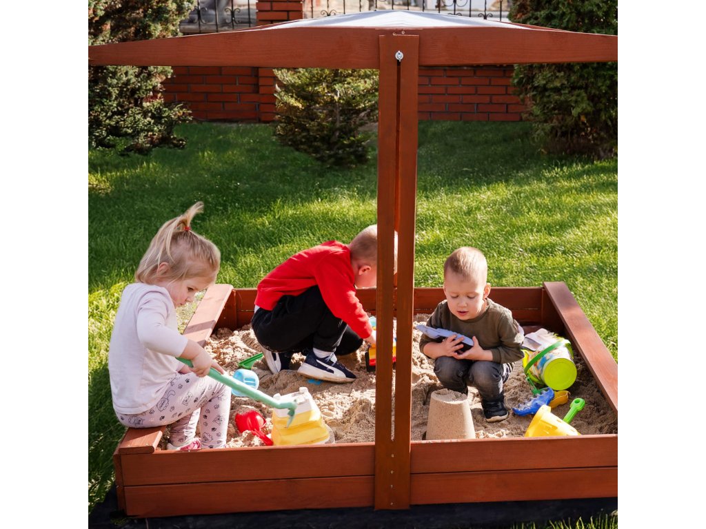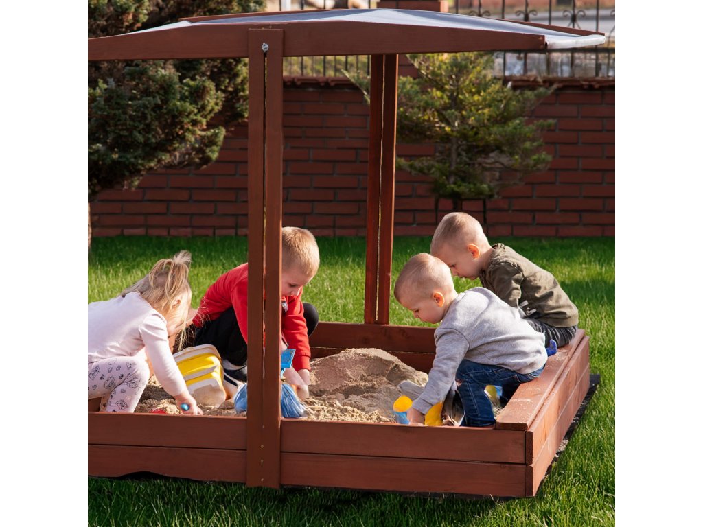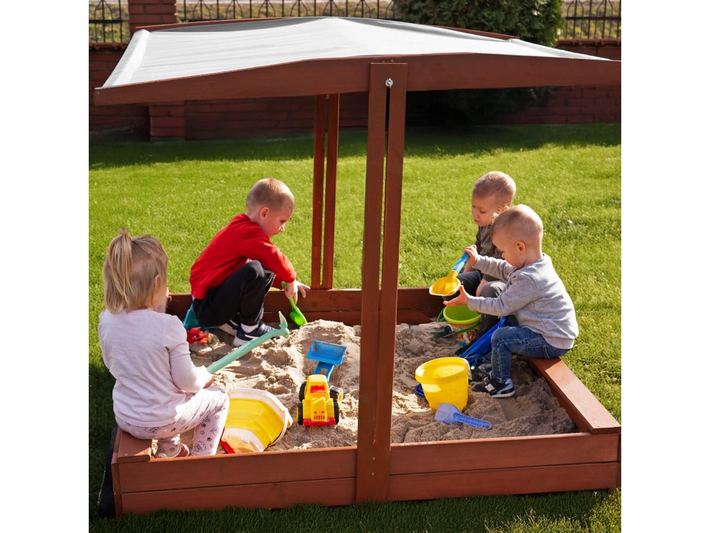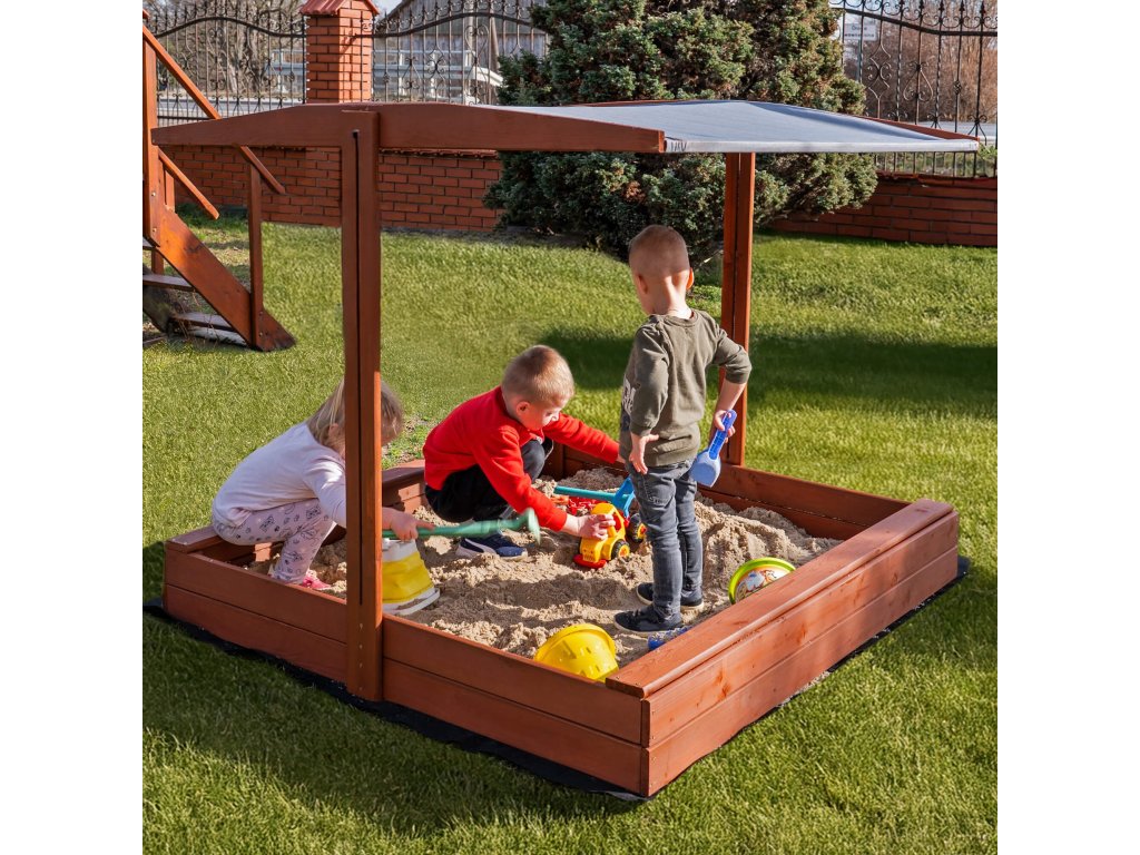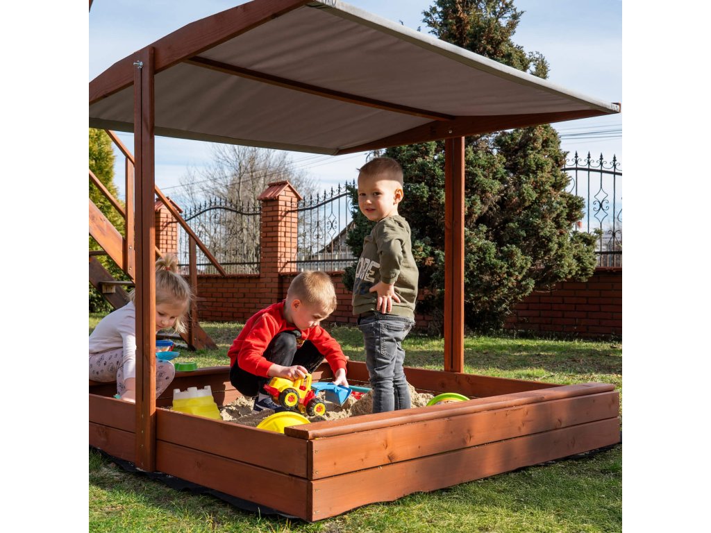DŘEVĚNÉ PÍSKOVIŠTĚ PREMIUM 140 X 140 CM se střechou SBP140RSET02