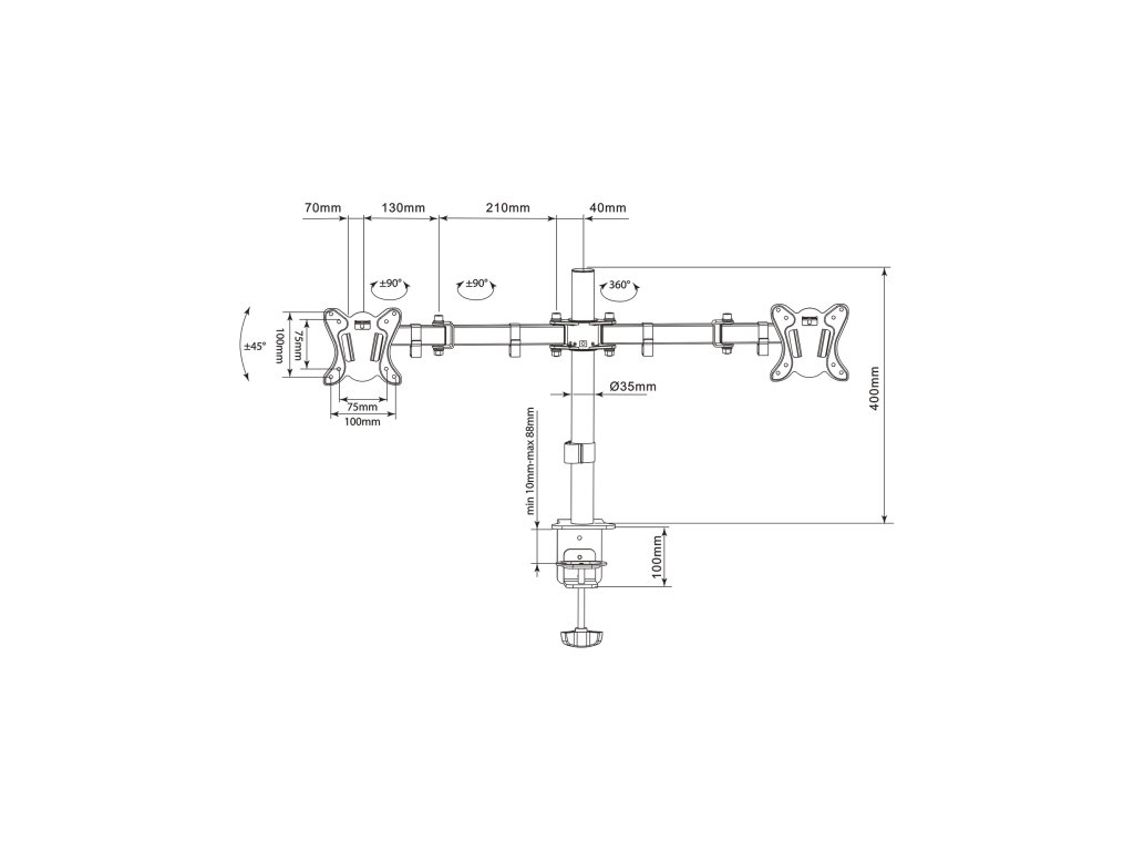 Sníte o lepší organizaci prostoru svého stolu? Držák na dva monitory UDT-C024 promění vaše pracovní místo a nabídne jedinečnou flexibilitu. Díky možnosti nastavení obrazovek na výšku (+45° až -45°) a na šířku (+90° až -90°) a plné otočnosti o 360° získáte úplnou volnost při nastavení monitorů v nejpohodlnější poloze. Ať už se potřebujete soustředit na detaily, nebo procházet širší záběry, tento držák vám umožní snadno upravit úhly pohledu dle vašich potřeb.