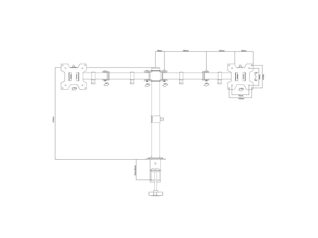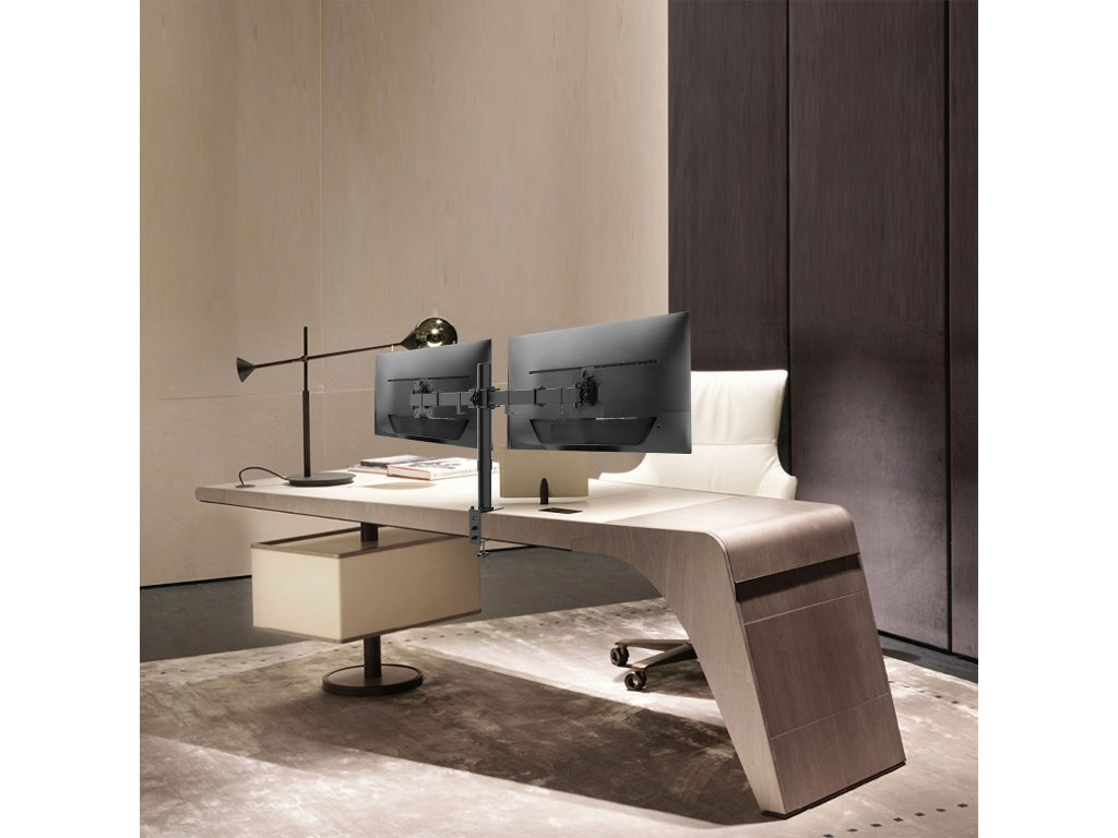 Hledáte flexibilní a pevný držák na monitor, který zajistí maximální svobodu nastavení? Pohyblivý držák montovaný na desku podporuje monitory s úhlopříčkou od 13 do 27 palců a maximální zatížení 8 kg, nabízející plnou regulaci úhlu naklopení, otáčení a výšky. Díky otočení monitoru a ramena o 360° a nastavení vertikálně a horizontálně, můžete ideálně přizpůsobit polohu obrazovky vašim potřebám. Držák je vhodný pro zakřivené obrazovky a je kompatibilní s normou VESA, a správa kabelů zajišťuje úhledný a organizovaný vzhled vašeho pracovního prostoru.