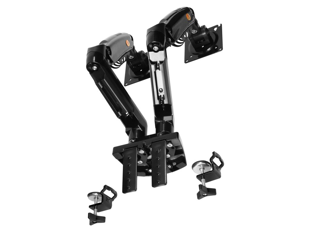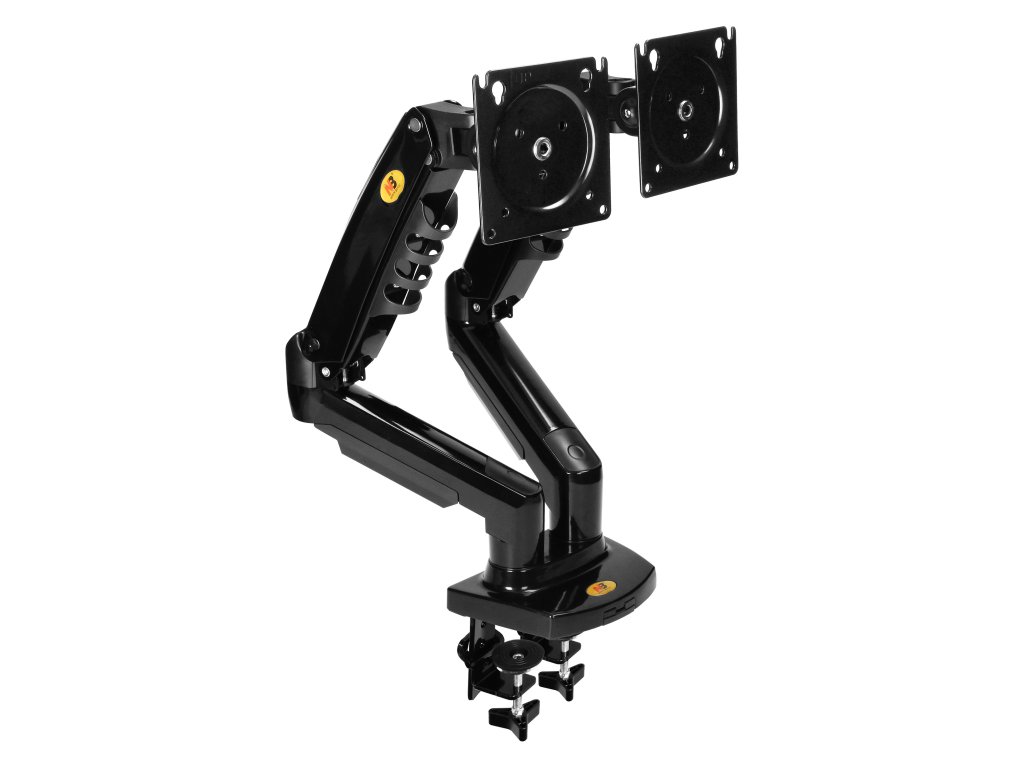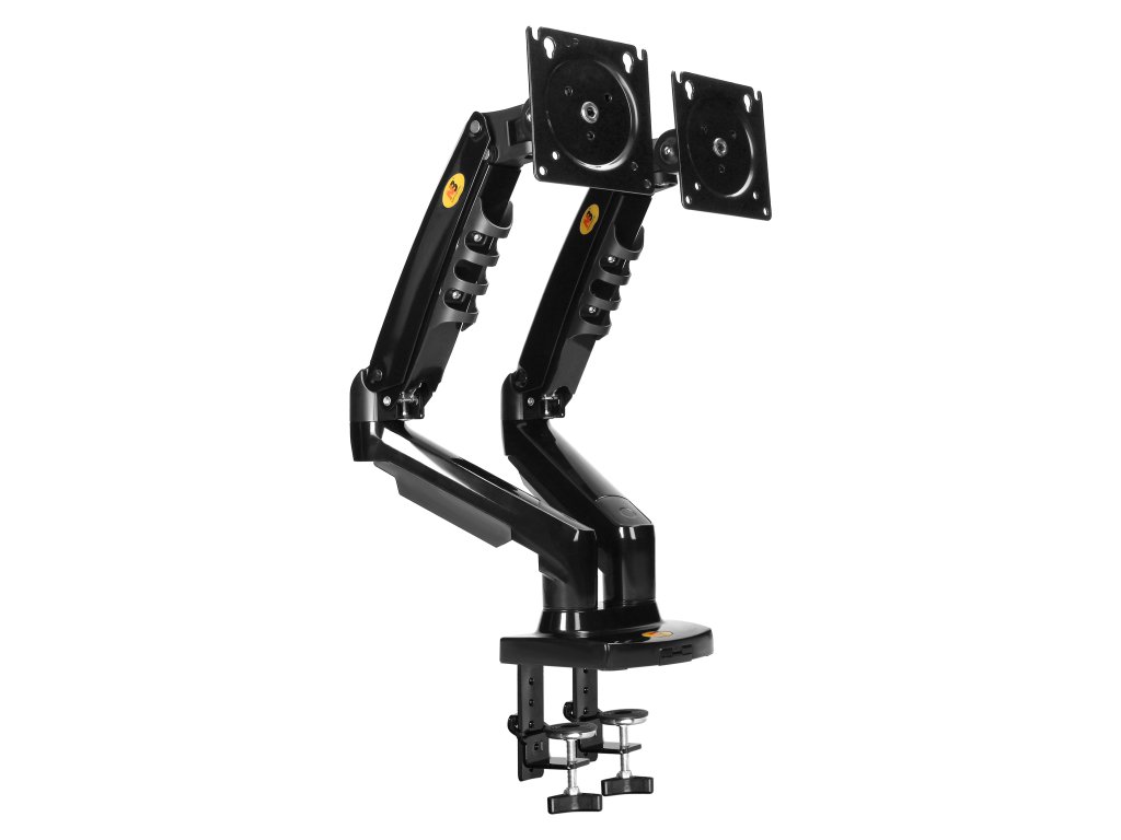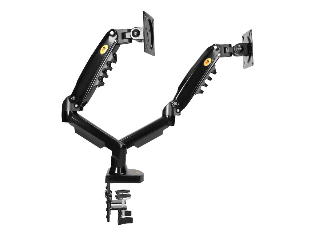 Nehledejte dál, Držák na dva monitory 17-27" s plynovou pružinou je perfektní volbou pro každého, kdo hledá flexibilitu, pohodlí a moderní design v jednom balení. Vylepšete si své pracovní prostředí již dnes a zažijte rozdíl, který dokáže tento držák přinést do vašeho každodenního života.