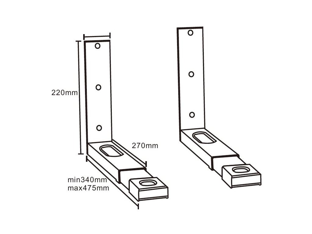 - Držák na stěnu pro mikrovlnnou troubu, - Snadná instalace a obsluha, - Základna může být rozšířena z 13,4'-18,7' (34-47,5 cm) - Maximální zatížení: 35 kg - Barva stříbrná- Držák na stěnu pro mikrovlnnou troubu,