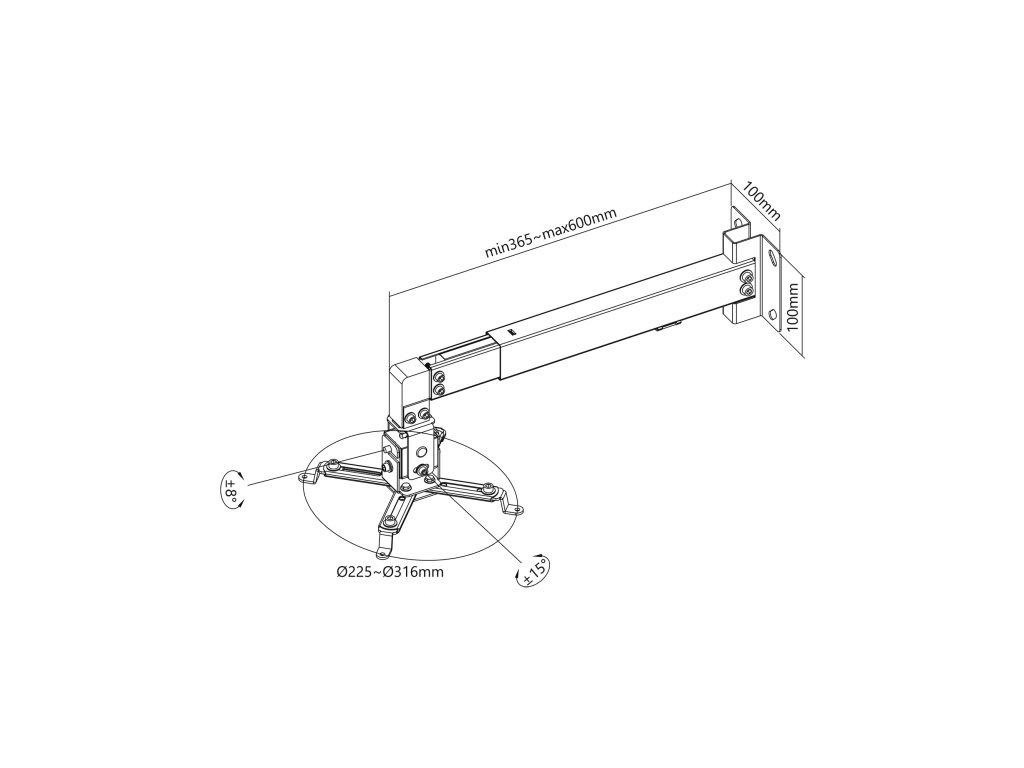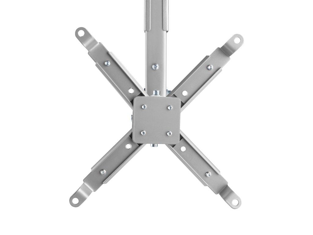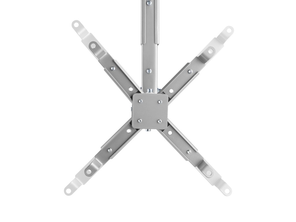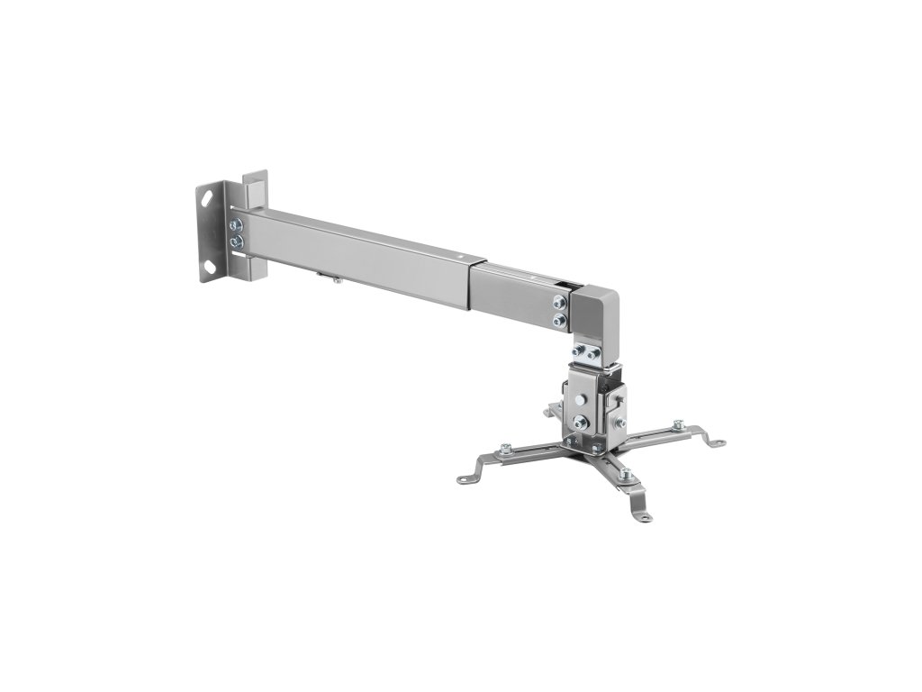 Vyrobený z odolné oceli s elegantním, stříbrným povrchem, ideálně se hodí do jakéhokoli interiéru. Systém řízení kabelů udržuje pořádek a zajišťuje čistotu a pořádek kolem projektoru, čímž zlepšuje estetiku celé místnosti. Přiložené montážní šrouby zajišťují rychlou a bezproblémovou instalaci na zeď nebo strop.