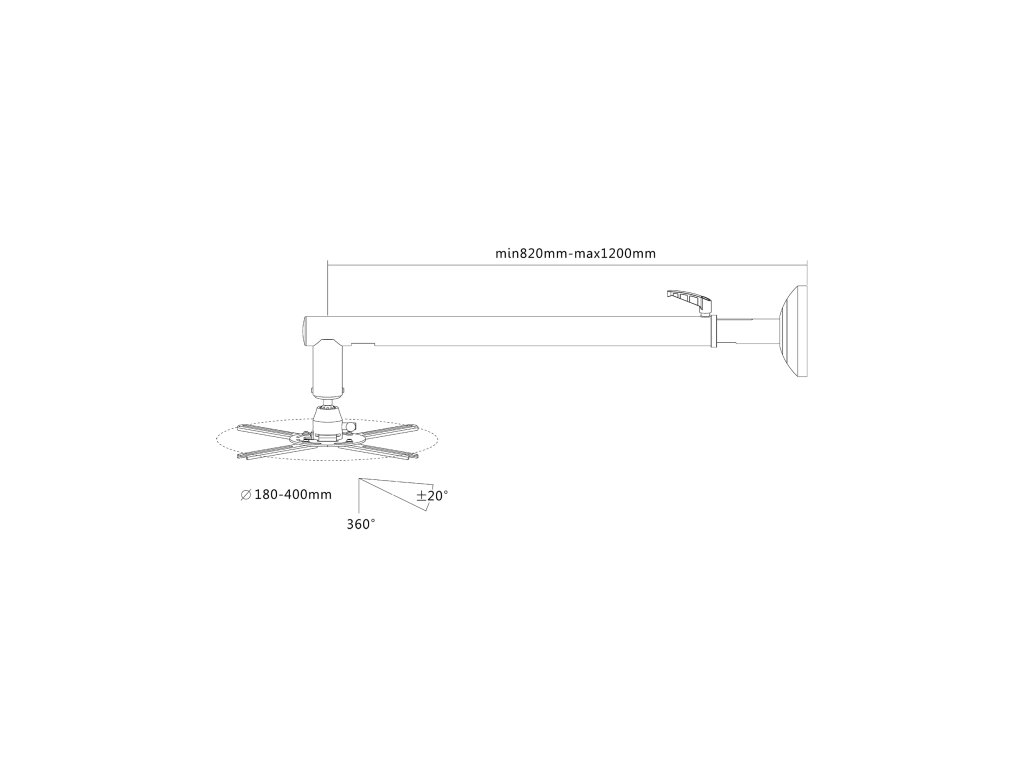 Určení: Projektory Montáž: Na stěnu Typ držáku: Pohyblivý Max. zatížení: 26 kg Rozsah montáže: 180 ~ 400 mm Vertikální nastavení: +20° ~ -20° Úhel otáčení: 360° Nastavitelná délka ramene: 820 – 1200 mm Správa kabelů: Ano Materiál: Hliník, plast, ocel Povrchová úprava: Práškově lakovaný Barva: Černá V balení: Montážní šrouby Rozměry: 1200 x 221 x 415 mmUrčení: Projektory
