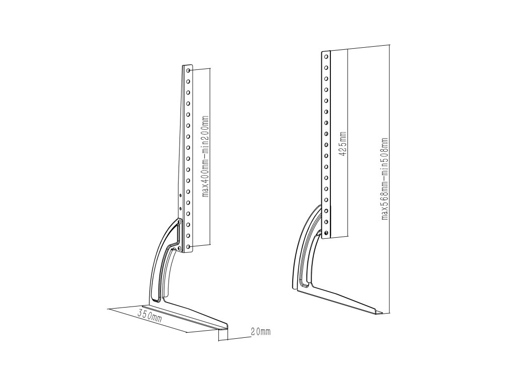 Držák podporuje standardy VESA s nastavitelnou výškou od 100 mm do 400 mm a šířkou od 200 mm do 800 mm, což zajišťuje všestrannost a kompatibilitu s různými modely televizorů. V sadě jsou montážní šrouby, které umožňují rychlou a bezproblémovou montáž. Stylové, černé provedení dodává moderní charakter a pevná konstrukce zajišťuje stabilitu a bezpečnost pro váš televizor.