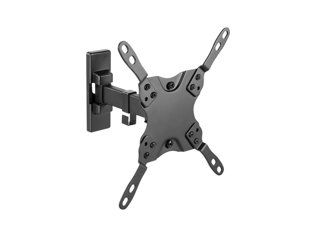 Určení: LCD televizory Montáž: Na stěnu Typ držáku: Pohyblivý Velikost obrazovky: 13” – 42” Max. zatížení: 20 kg Standard VESA: 75x75, 100x100, 200x100, 200x200 Nastavení vertikálně: +5° ~ -12° Nastavení horizontálně: +90° ~ -90° Vzdálenost od stěny: 60 ~ 190 mm Vyrovnání horizontálně: +3° ~ -3° Vodováha: Ne Správa kabelů: Ano Vhodné pro zakřivené obrazovky: Ano Antikrádežová ochrana: Ne Materiál: Ocel, plast Povrchová úprava: Práškově lakováno Barva: Černá V balení: Montážní šrouby Rozměry: 190 x 220 x 220 mmUrčení: LCD televizory