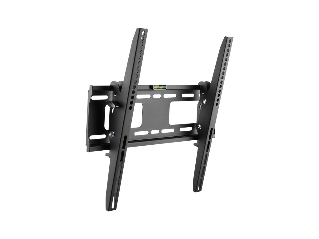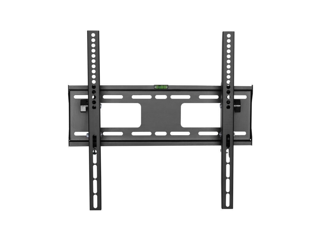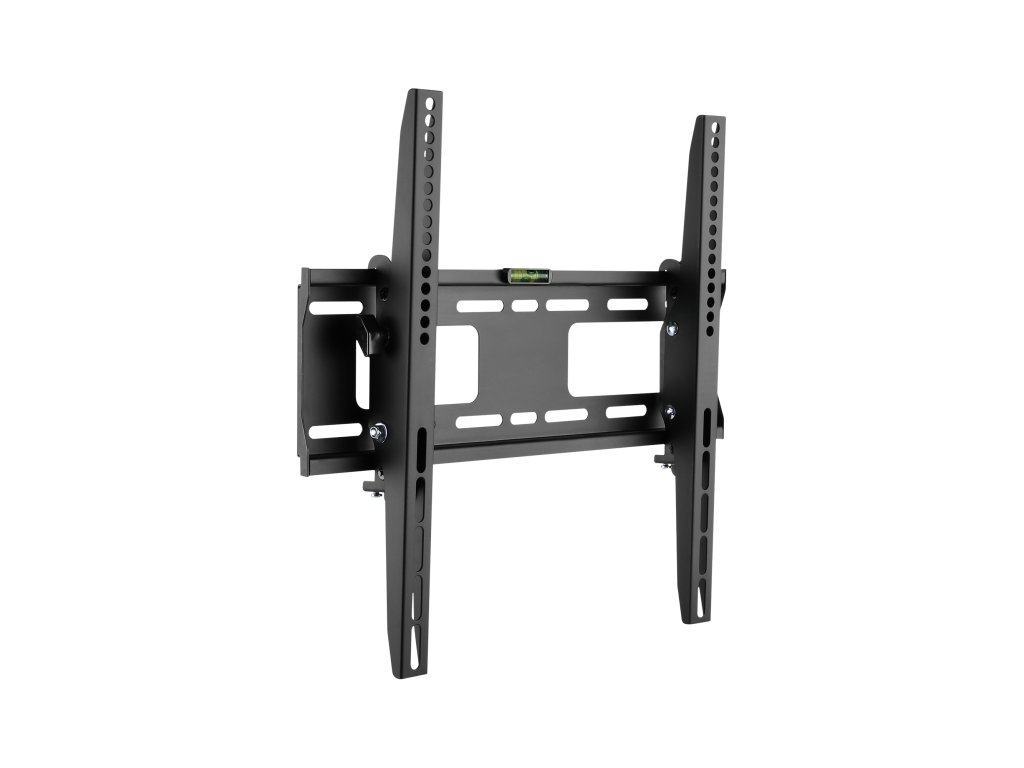Vyrobeno z pevné oceli a práškově lakováno na elegantní černou barvu, nabízí maximální zatížení do 50 kg, poskytující bezpečnou podporu pro větší televizory. Díky své odolné konstrukci a modernímu designu se stává nejen funkčním řešením, ale také elegantním prvkem v každém interiéru. Vestavěná vodováha usnadňuje přesnou montáž a vzdálenost od stěny 56 mm zaručuje úhledné a estetické přizpůsobení.