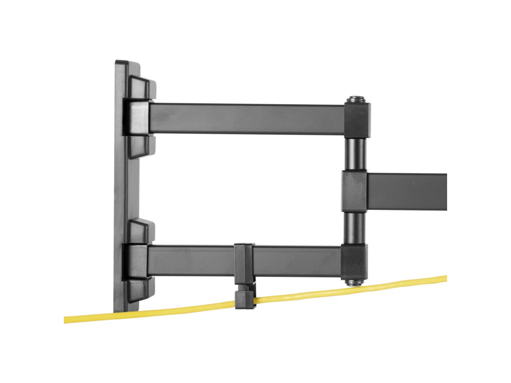 Držák podporuje normy VESA, což zaručuje univerzálnost a kompatibilitu s širokou škálou televizorů, včetně zakřivených obrazovek. Nastavitelná vzdálenost od stěny v rozmezí od 60 do 364 mm a vestavěný systém pro správu kabelů pomáhají udržet estetiku a pořádek ve vašem interiéru. Lakované práškově, černé provedení dodává moderní styl. Navíc pevná konstrukce zajišťuje trvanlivost a spolehlivost, díky čemuž je praktickou a elegantní volbou pro každou místnost.