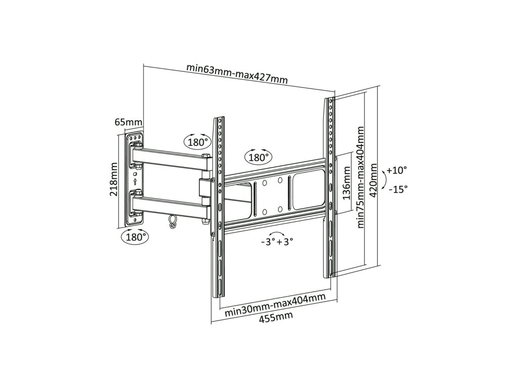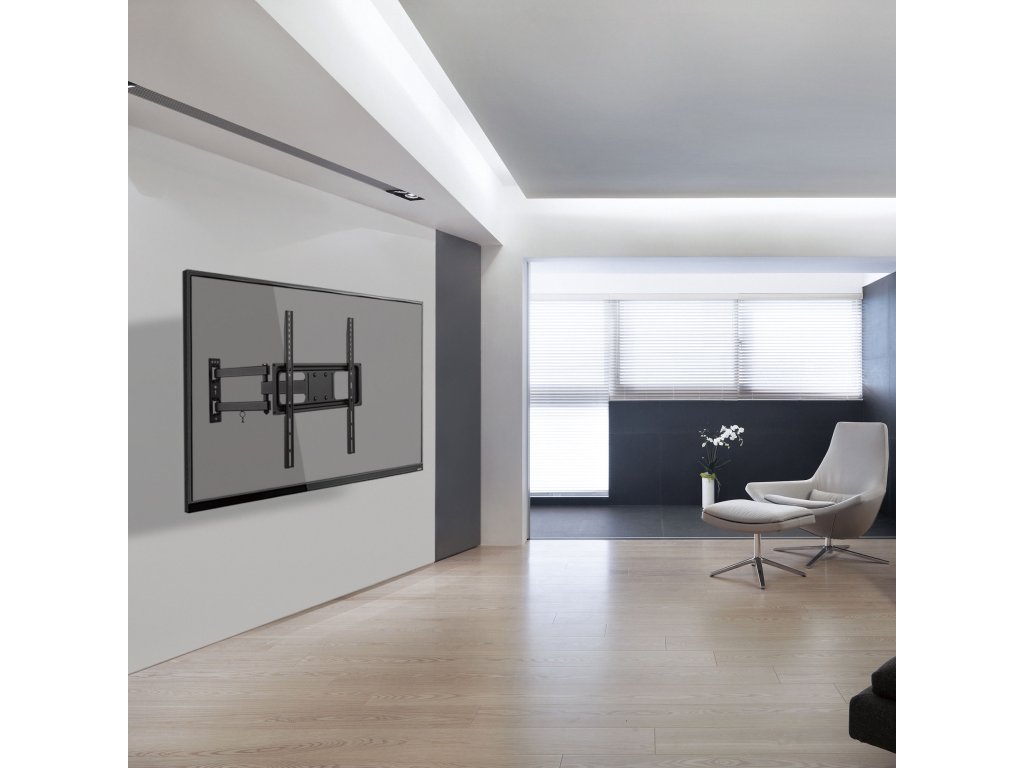 Držák podporuje širokou škálu standardů VESA a je přizpůsoben televizím o maximální hmotnosti 35 kg, zajišťujícím stabilitu. Nastavení vzdálenosti od stěny v rozsahu od 63 do 427 mm a vestavěné kabelové vedení umožňují estetické a funkční přizpůsobení. Do sady jsou přiloženy montážní šrouby, což usnadňuje rychlou a jednoduchou montáž.