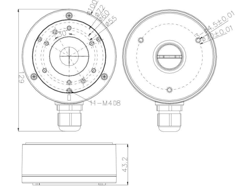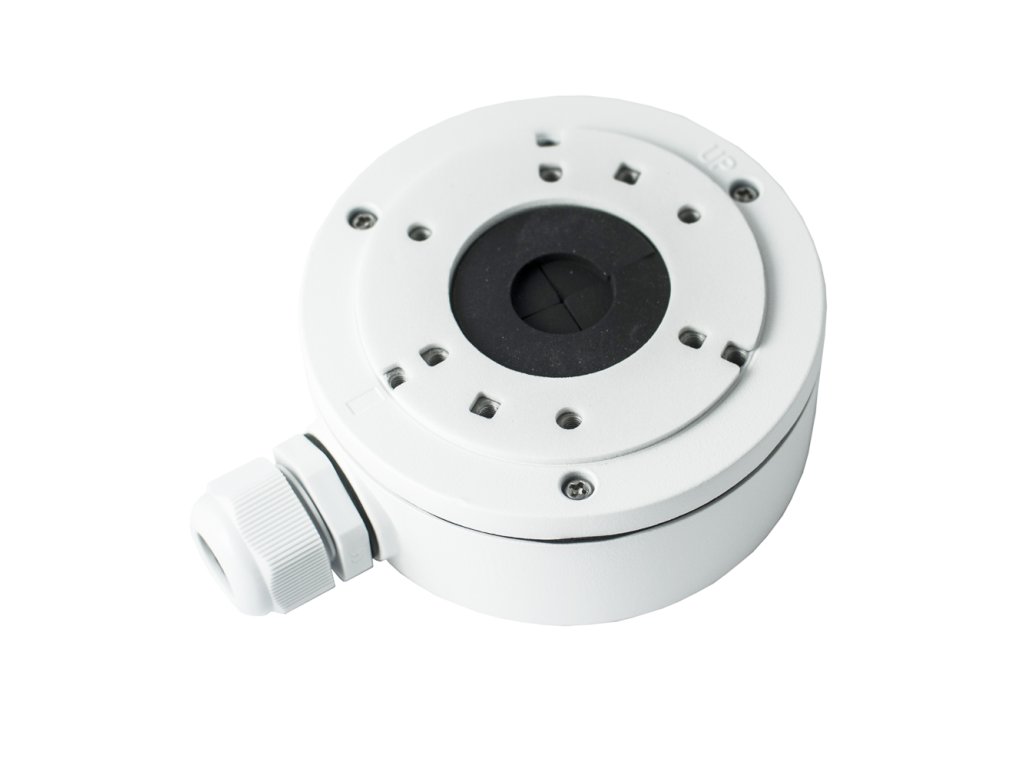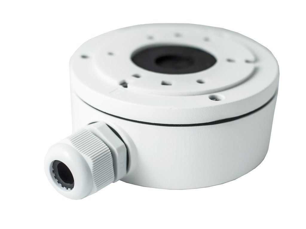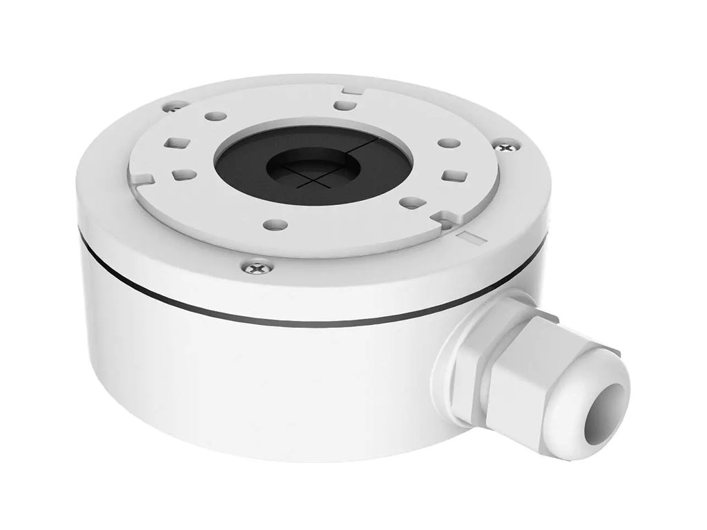 Adaptér DS-1280ZJ-XS je montážní krabice určená k upevnění tubusových a kopulovitých kamer značky Hikvision. Krabice je vyrobena z pevného kovu a její konstrukce a kabelová průchodka umožňují snadný přístup k kabelům při současném zachování těsnosti. Velké množství montážních otvorů v základně kamery zajišťuje kompatibilitu s mnoha kamerami dostupnými na trhu.
